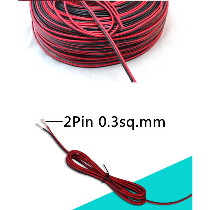 สายไฟ 2Pin 0.3sq.mmสีแดงสีดําสายไฟคู่ ราคาขายต่อ 1m(ตัวอย่าง :ต้องการ 5เมตร>กดเลือกจำนวน=5หน่วย