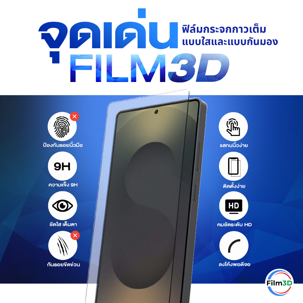 Film3D ฟิล์มกระจก สำหรับ iPhone แบบใส ขอบโค้ง เต็มจอ Premium Glass 17 16 15 14 13 12 11 X Pro ไอโฟน