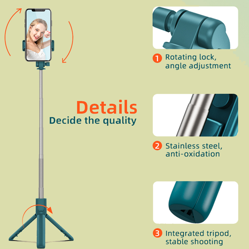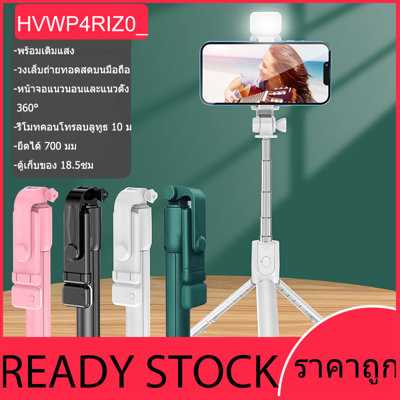 ไม้เซลฟี่ควบคุมระยะไกลแบบบลูทูธ R1S เติมแสง, ไม้เซลฟี่ไร้สายแบบพับได้ขาตั้งกล้อง 360 ° ไม้เซลฟี่แบบถ่ายทอดสดแบบแสง