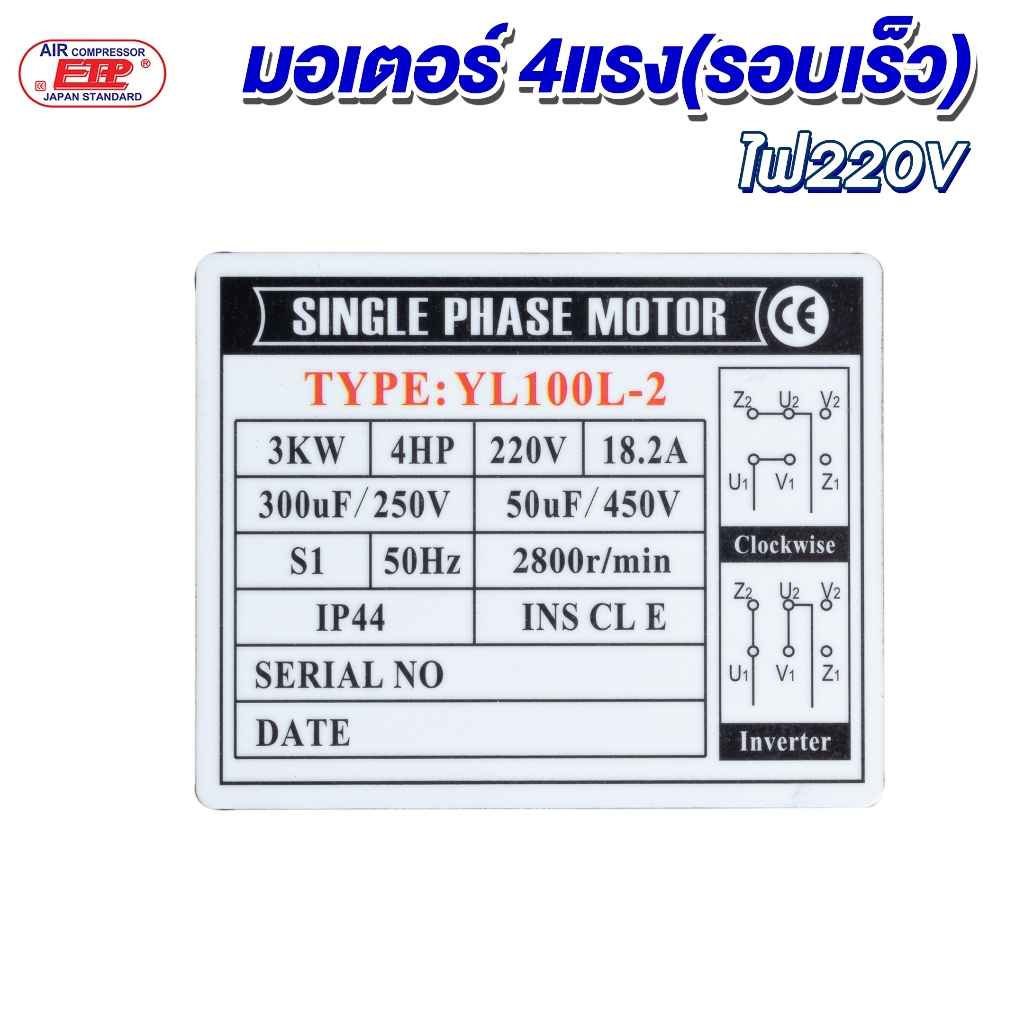 มอเตอร์รอบเร็วขนาด 4 แรง ไฟ220V.