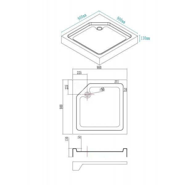 shophome468 Verno ถาดรองอาบน้ำเหลี่ยม รุ่น ABS-02N ขนาด ขนาด 90x90x15 ซม.รับประกันของเเท้