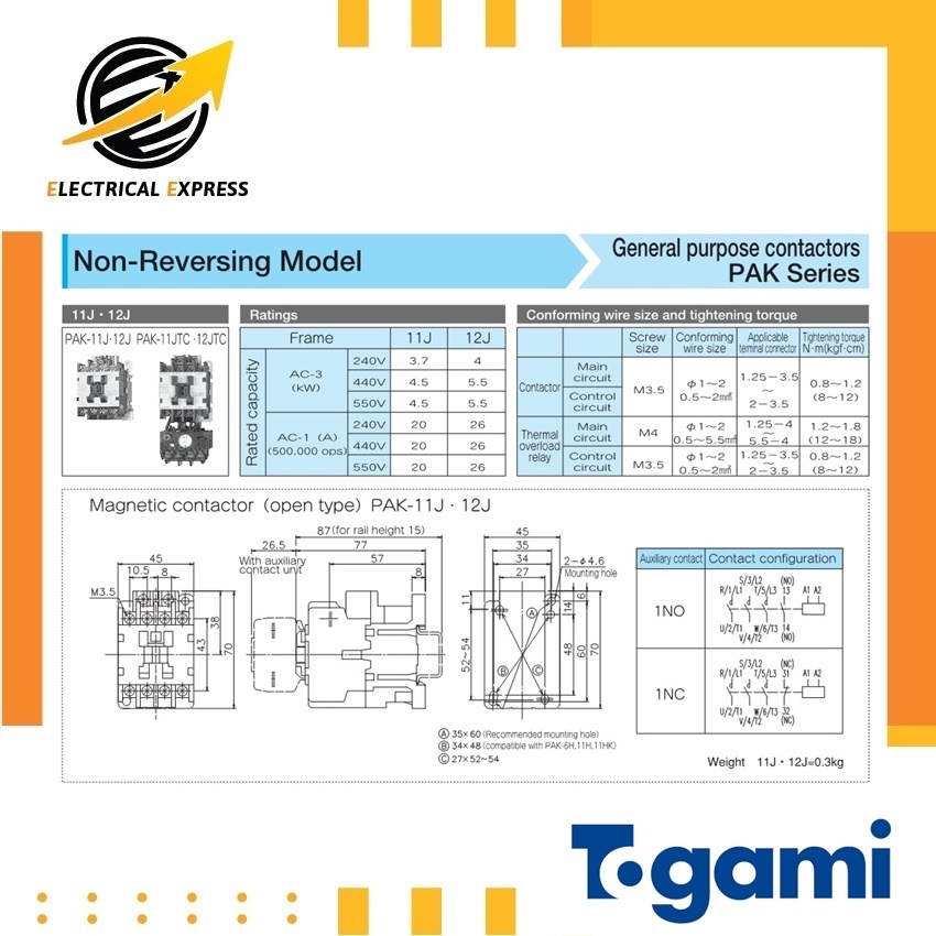 ***Japan Quality *** แมกเนติกคอนแทคเตอร์ (Magnetic Contactor) แบรนด์โตกามิ (Togami) รุ่น PAK11J ของญี่ปุ่นแท้