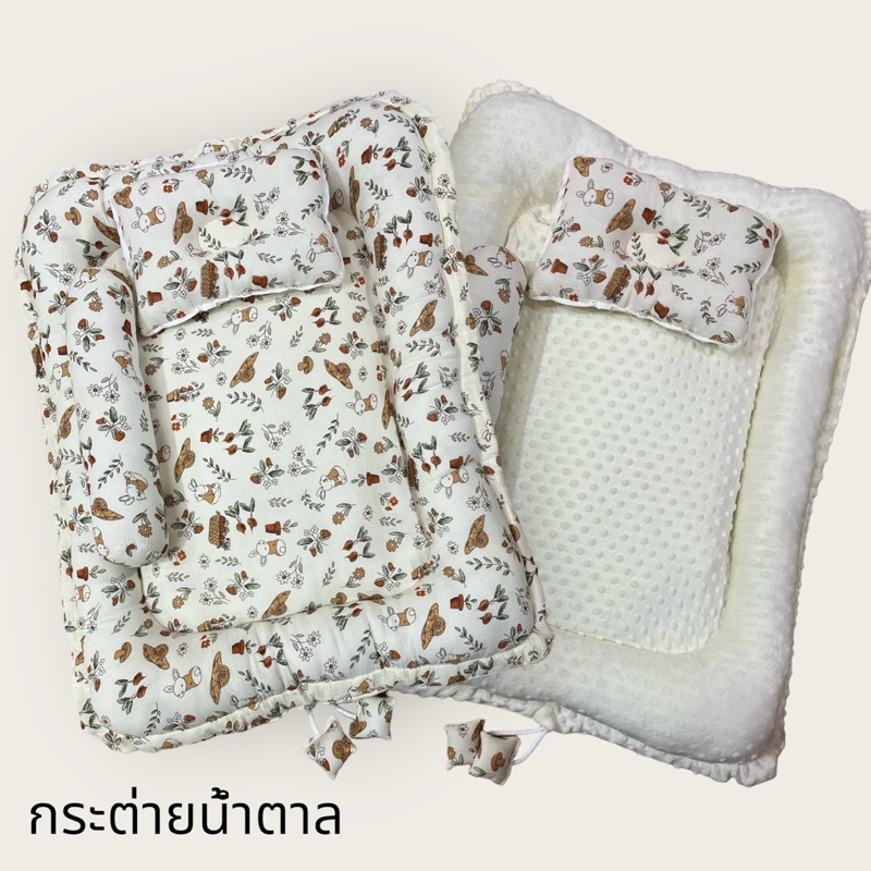 ที่นอนเด็กแรกเกิด ที่นอนรังไข่ ผ้าดอทมิ้งค์+มัสลินย่น รูดได้ ถอดซักได้ นอนได้2ด้าน