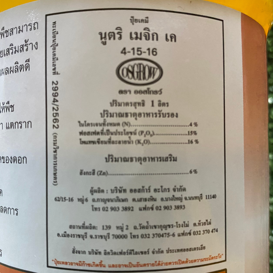 เมจิก เค #ออสก้าร์ สร้างสารพันธุกรรม สร้างออกซิน คุณภาพตามเต็มตามสายพันธุ์ ขนาด 1 ลิตร