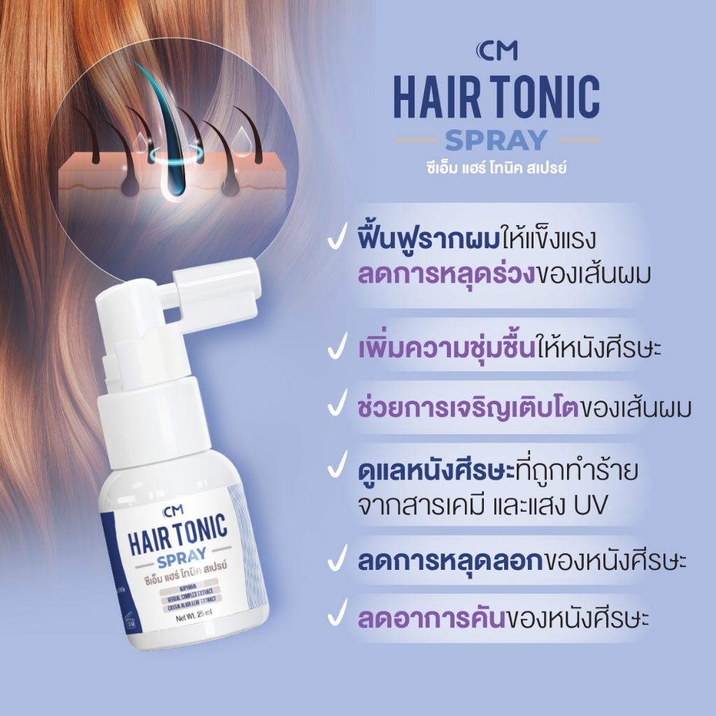 แฮร์โทนิคสเปรย์ ลดผมร่วง บำรุงหนังหัวให้ชุ่มชื้น CM Hair Tonic Spray ลดอาการคันจากหนังศีรษะลอก cosma