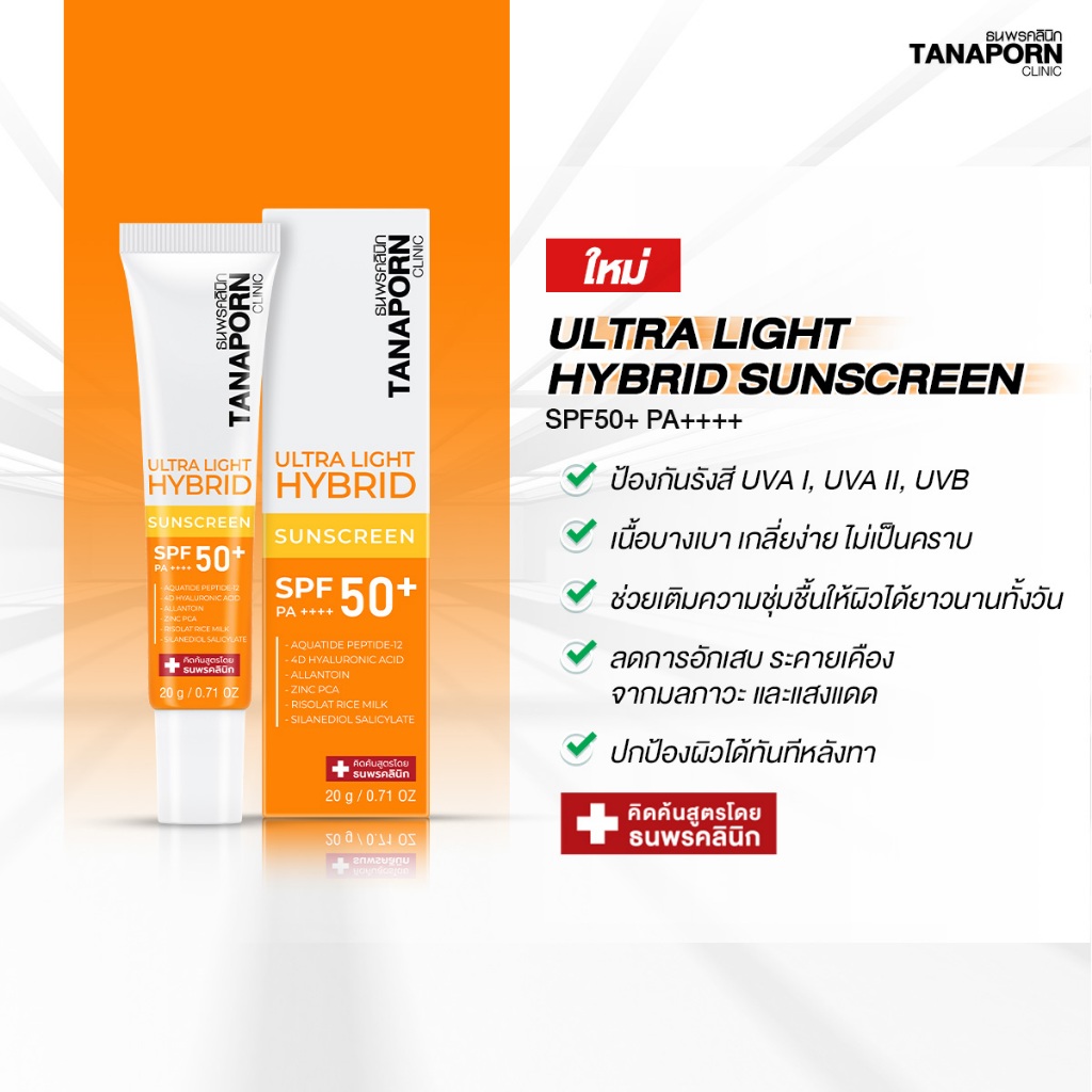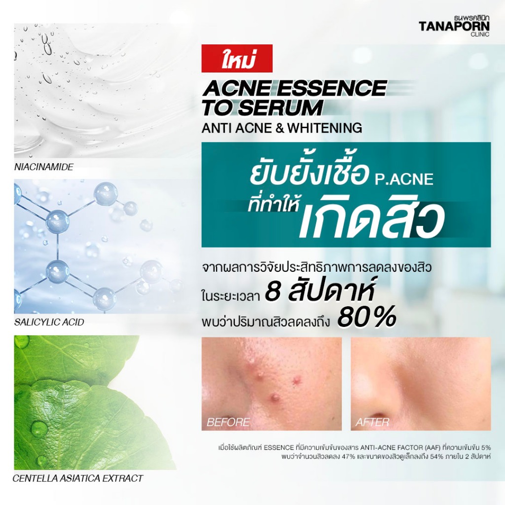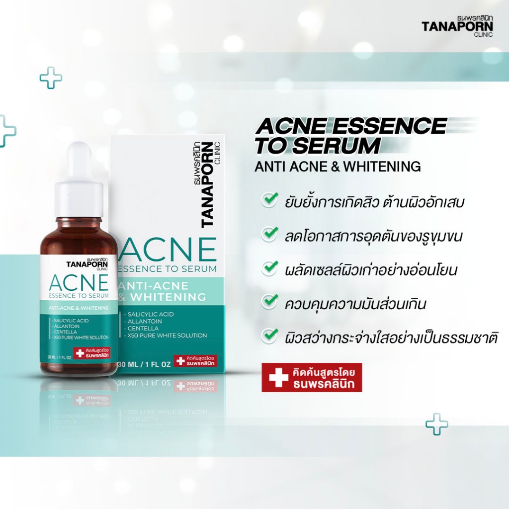 [เซตคู่ เซรั่มสิว+กันแดด] TANAPORN CLINIC ACNE ESSENCE TO SERUM + ULTRA LIGHT HYBRID SUNSCREEN SPF50+ PA++++