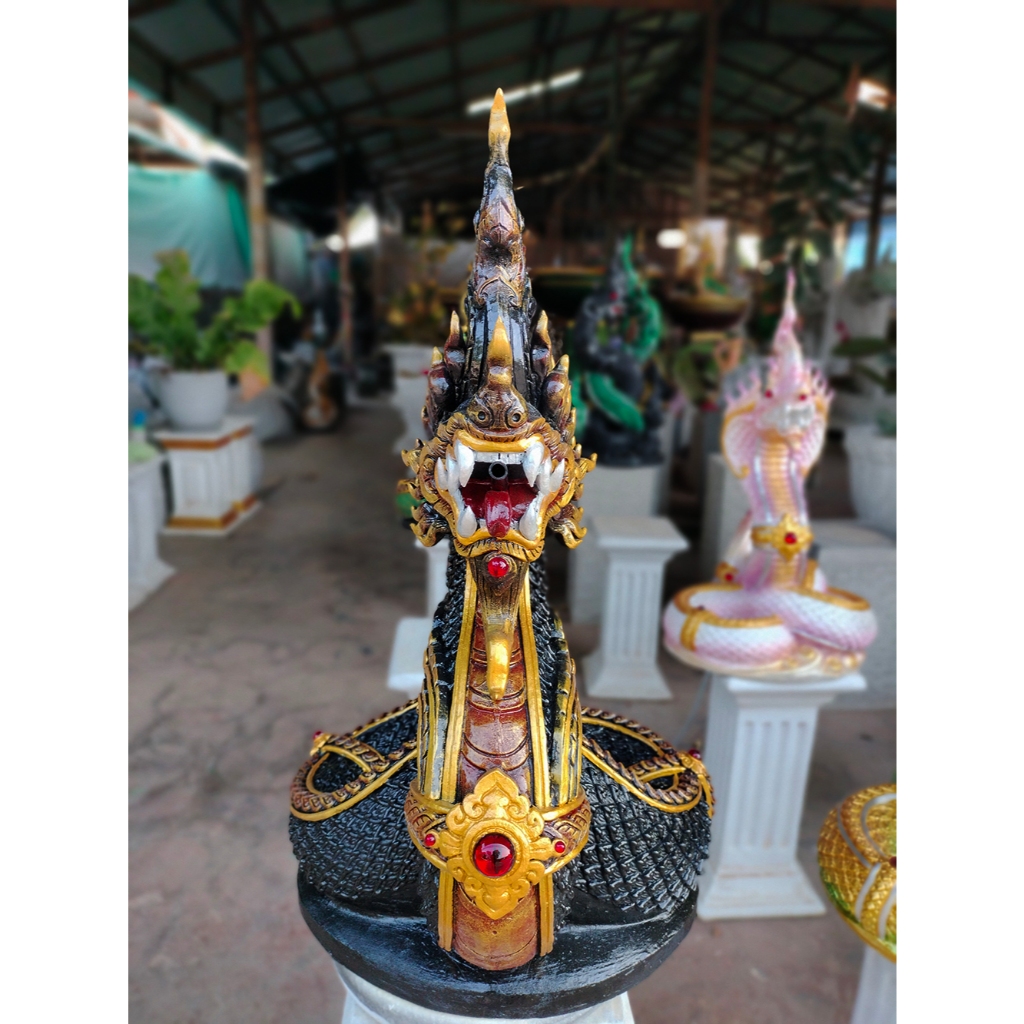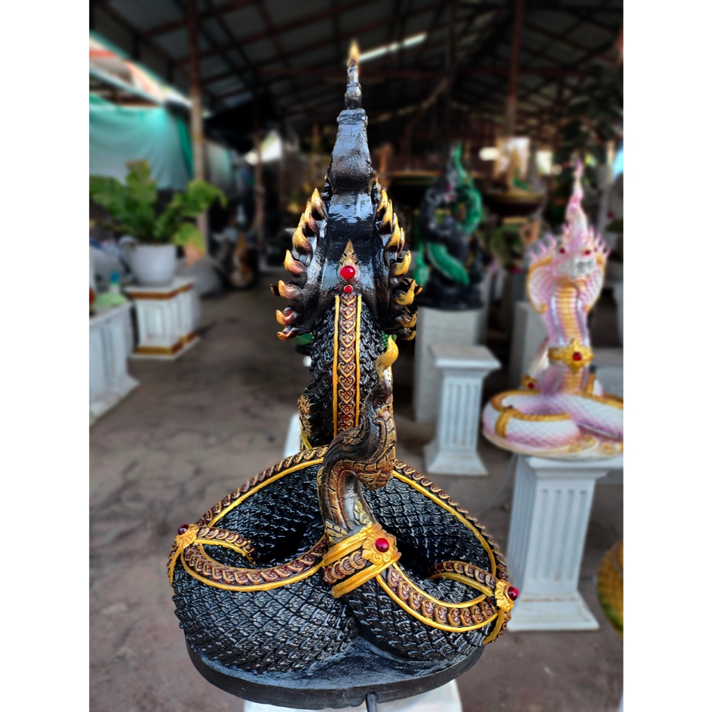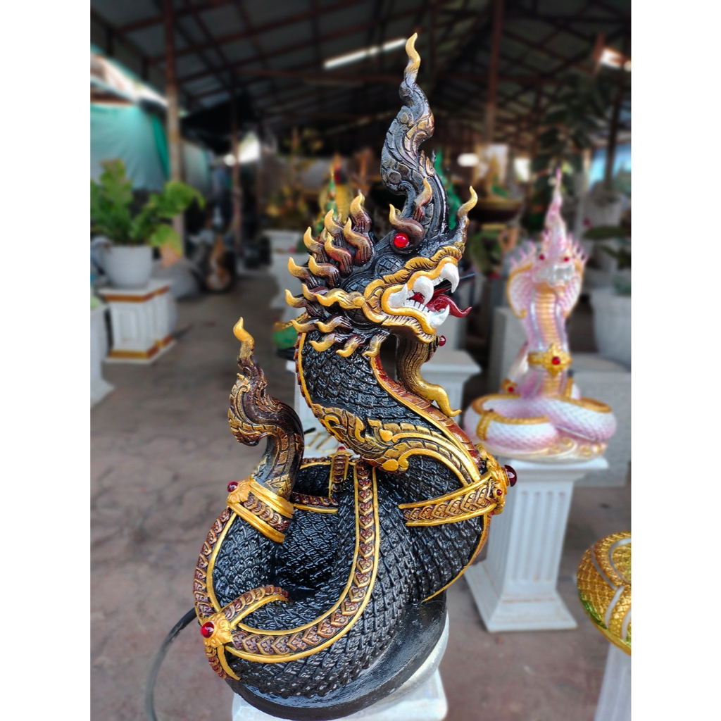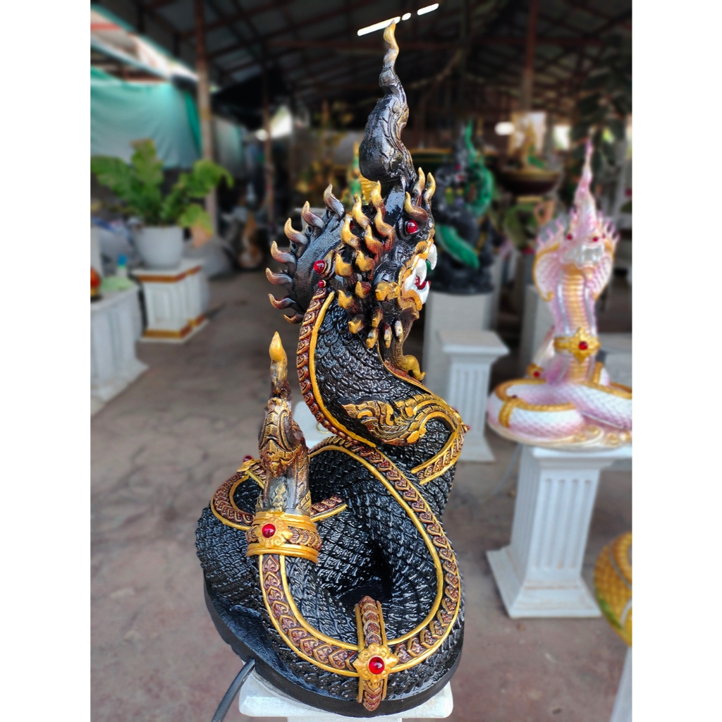 รูปปั้นพญานาคพ่นน้ำ พญานาคพ่นน้ำ พญานาค พญานาคปูนปั้น พญานาคสีดำ พญานาคราช BC-190 (สูง 70 ซม.)