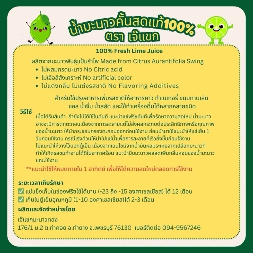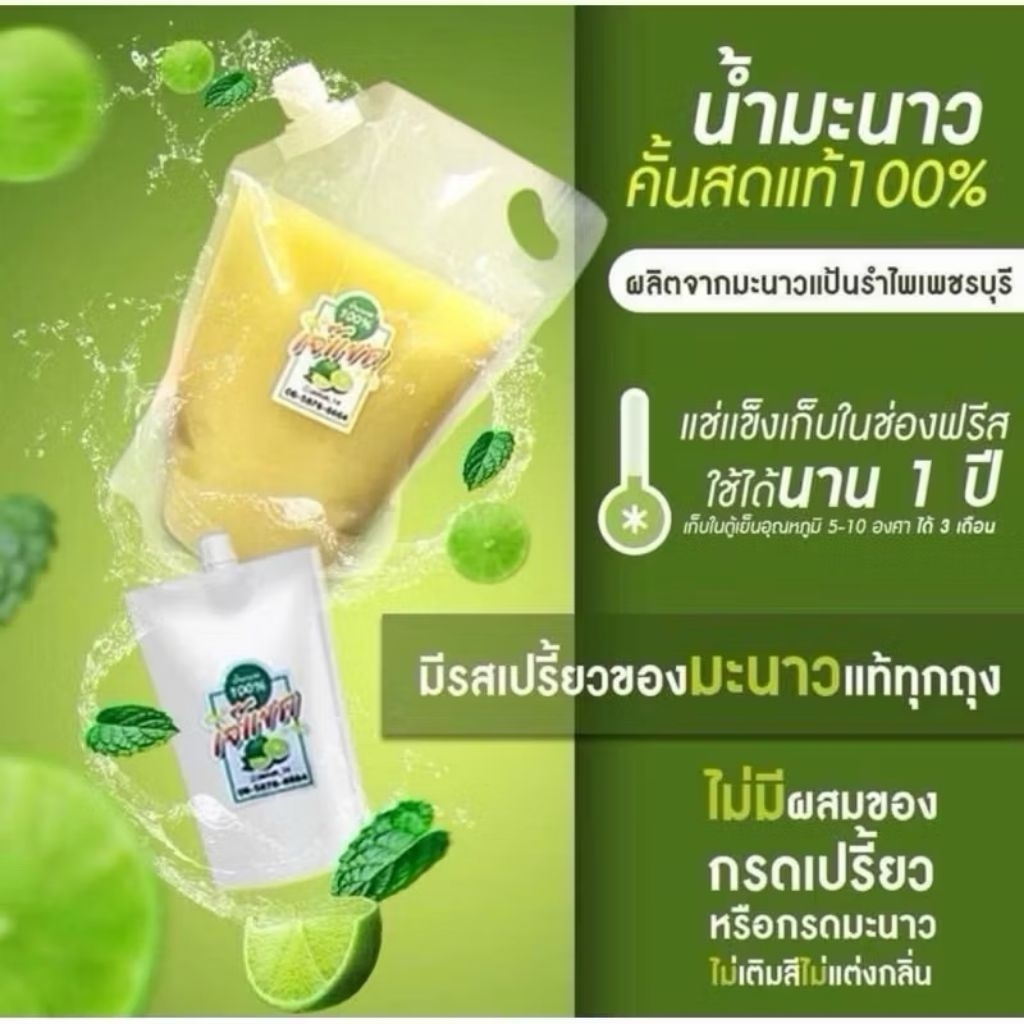 JAEKAEK น้ำมะนาวคั้นสดแท้ Premium Fresh จากมะนาวแป้นรำไพเพชรบุรี 1500 mlถุงฝาเกลียว ซีลฟอยล์ควบคุมความเย็น+ Ice Pack1