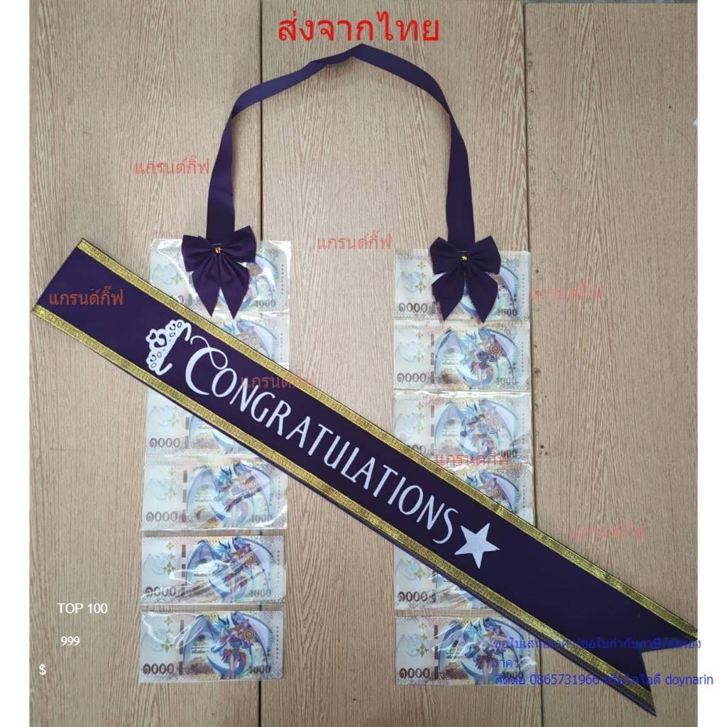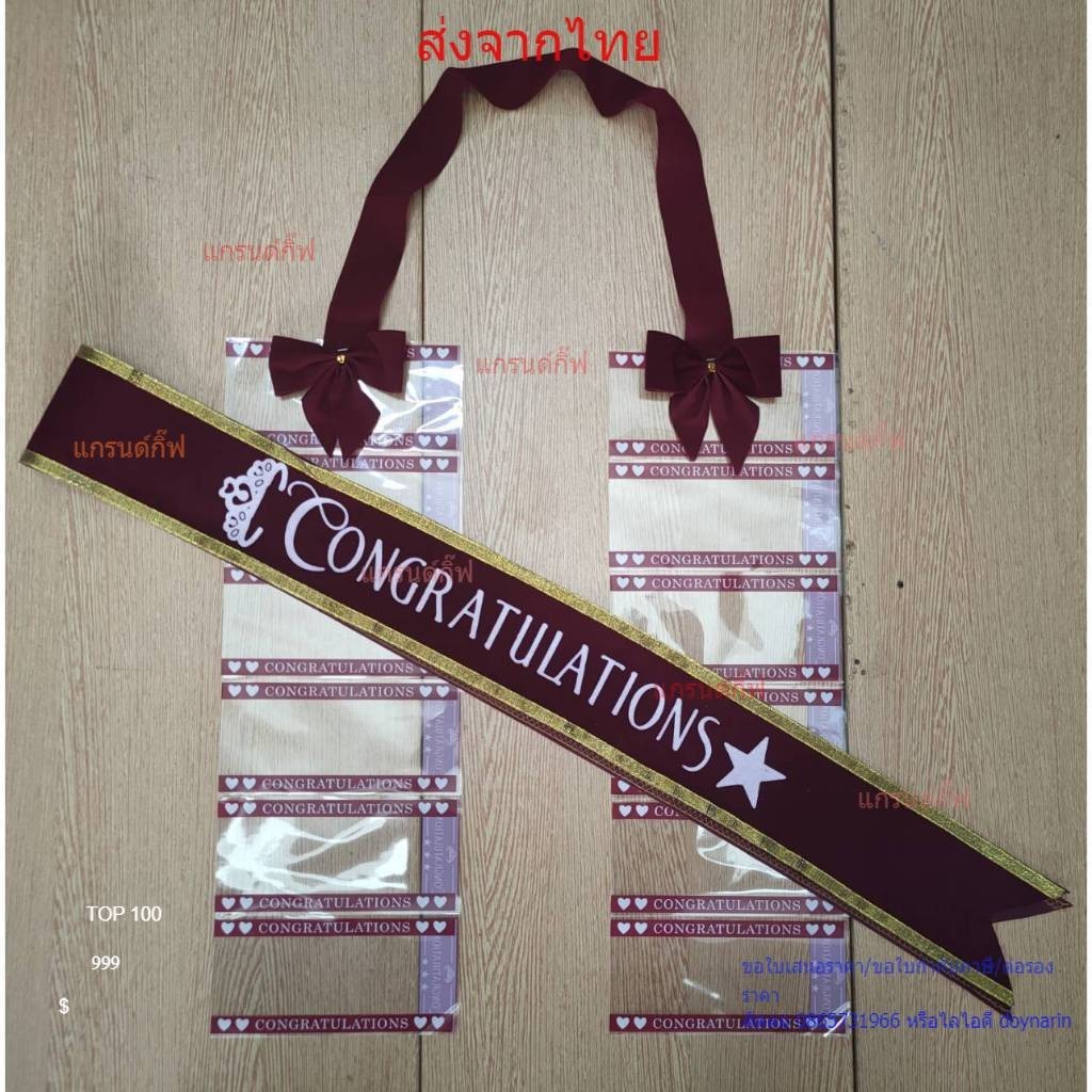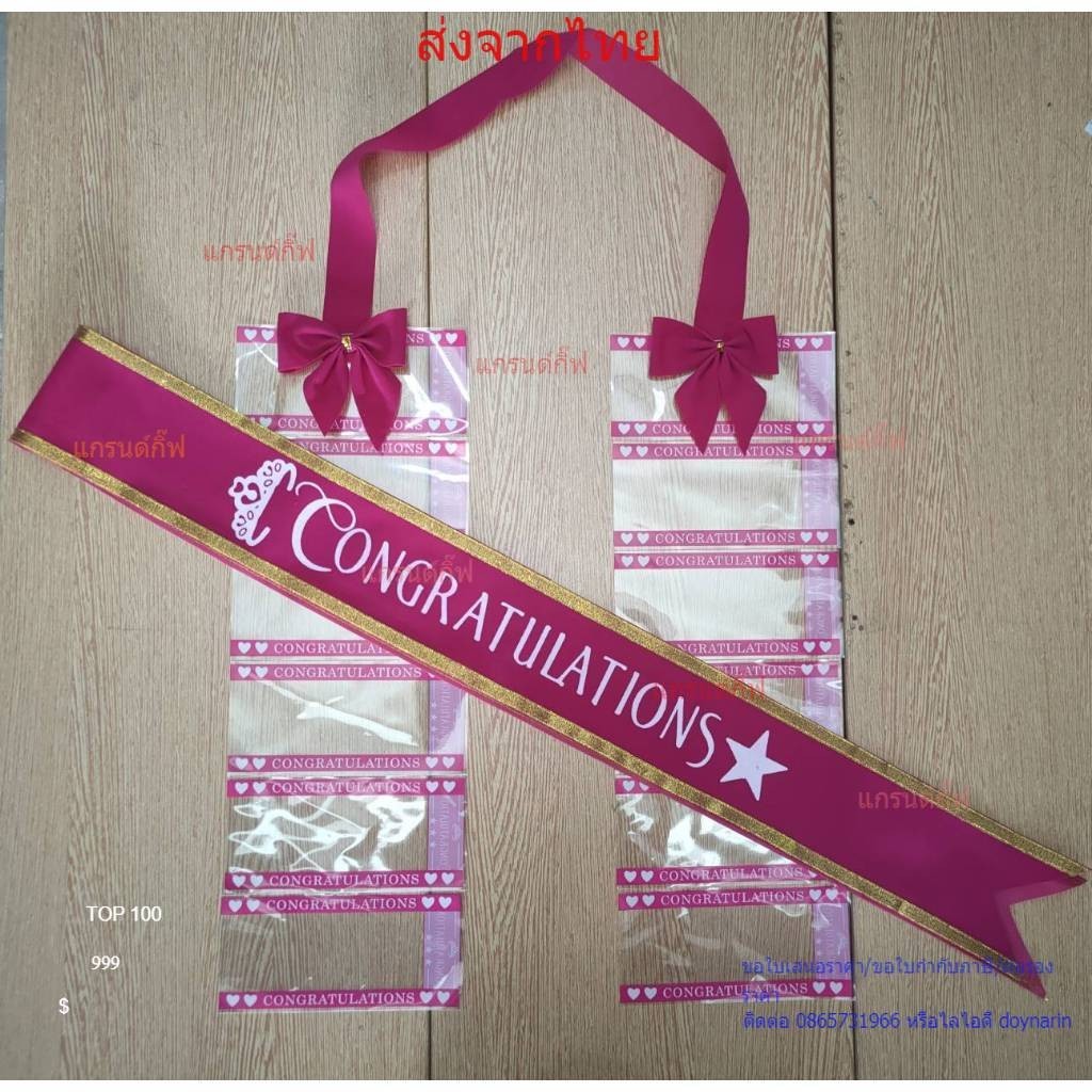 สายสะพายปัจฉิม ผ้ากำมะหยี่ congratulation จับเซ็ทคู่กับพวงมาลัยเงินโบว์ พร้อมส่ง เก็บเงินปลายทางได้