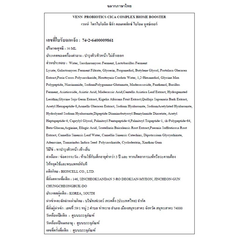 VENN เวนน์ PROBIOTICS CICA COMPLEX BIOME BOOSTER 30 ML ( ซื้อ 1 แถม 1 ) VENN BOOSTER ขวดเขียว ลดสิว ผิวแข็งแรง