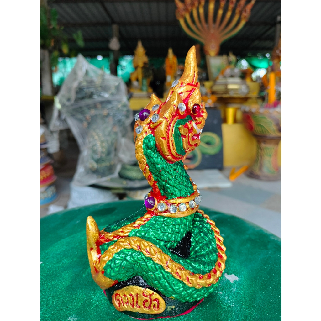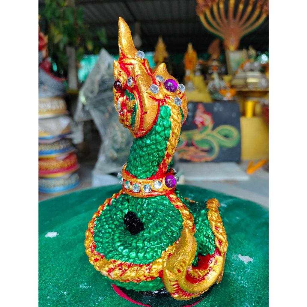 รูปปั้นพญานาค พญานาคบูชา พญานาคตั้งโต๊ะ พญานาคสีเขียว พญานาคราช K-10 (สูง 16 ซม.)