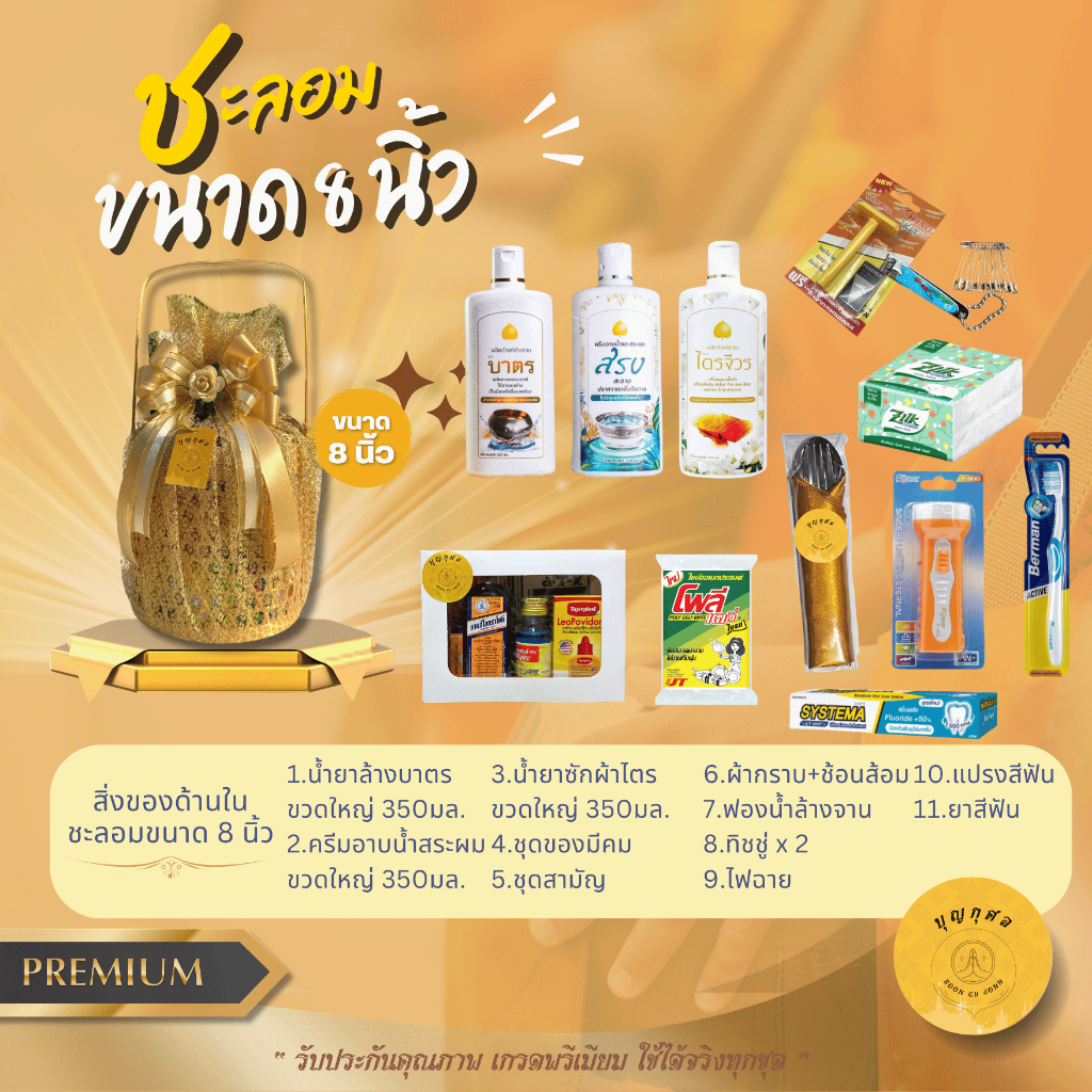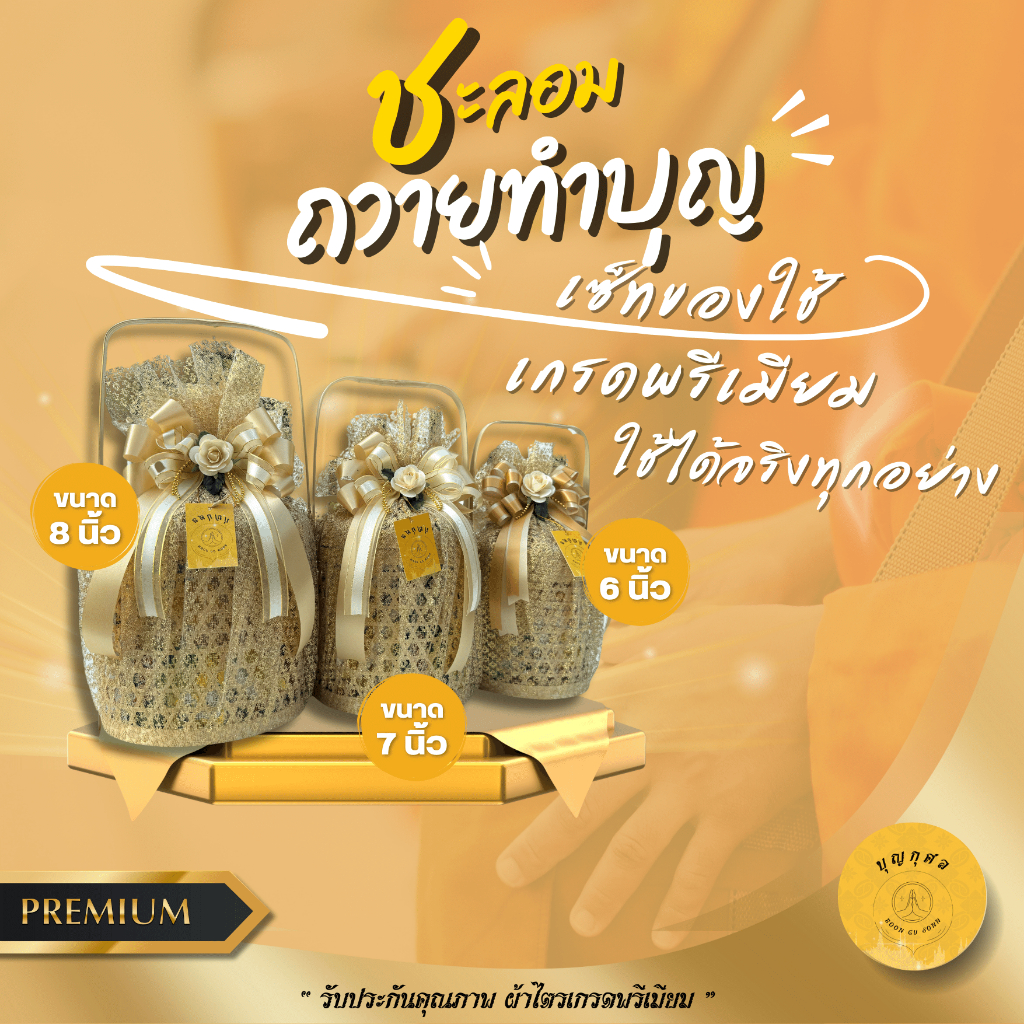 ชะลอมสังฆทาน สำหรับถวายทำบุญ *เกรดพรีเมียม ของใช้ได้จริงทุกอย่าง* ห่อตาข่าย ผูกโบว์ให้แบบในรูปและจัดใหม่ทุกชุด*