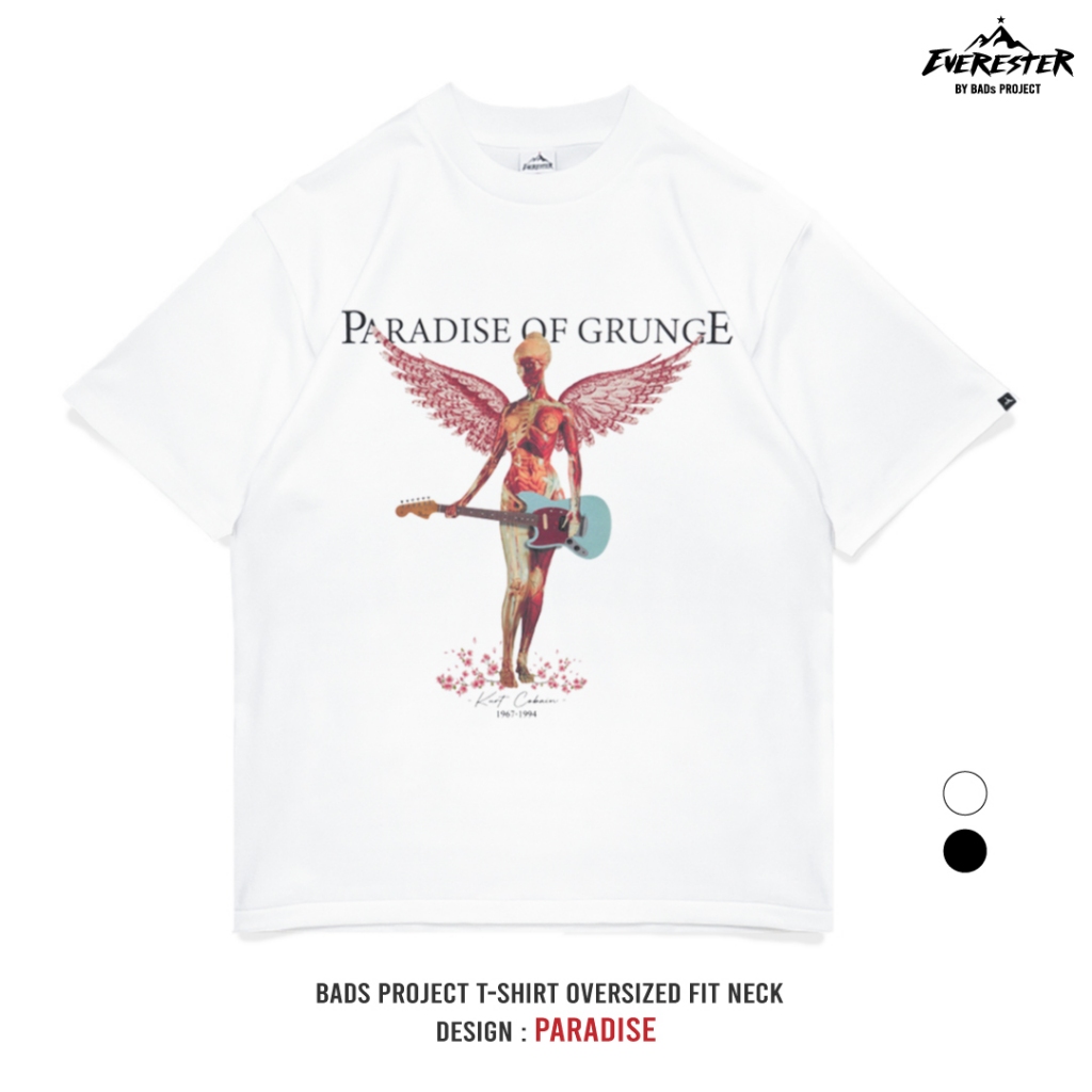 EVERESTER เสื้อคอฟิต อก 44"- 52" Heavy Cotton 100 % / เสื้อยืดผู้ชาย Oversized รุ่น Paradise Black / EXP