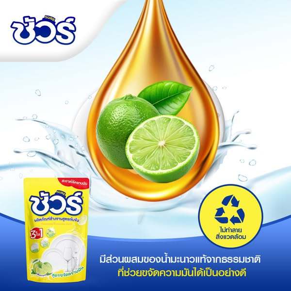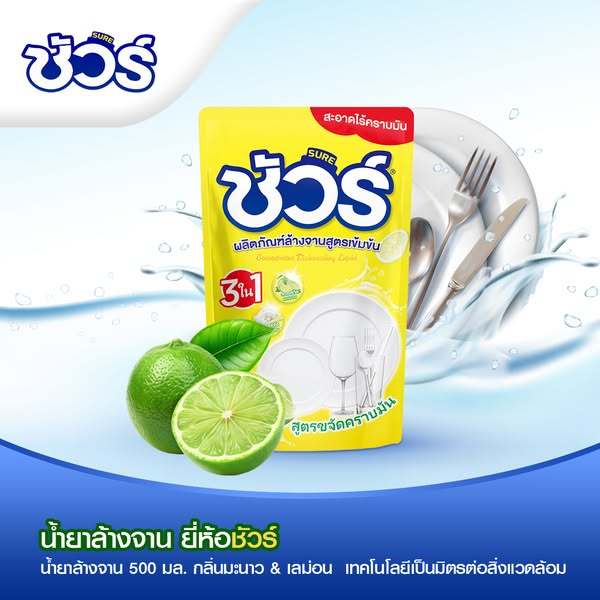 SURE ชัวร์ น้ำยาล้างจาน 450ml ซันไลต์ ล้างจาน กลิ่นเลม่อน ผลิตภัณฑ์ล้างจาน Dishwashing Liquid
