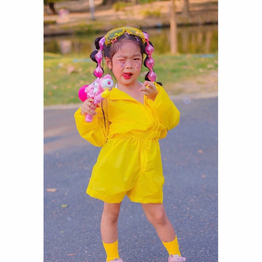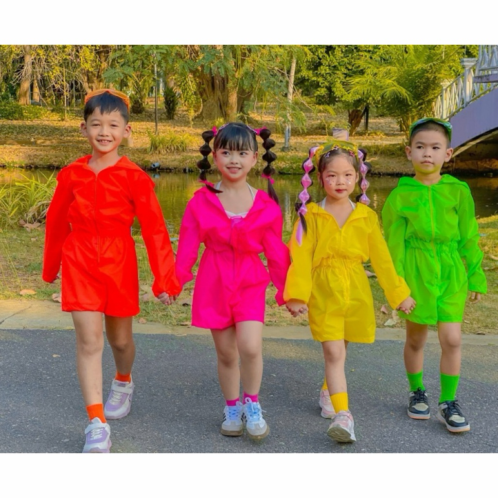 พร้อมส่ง💦🔫 ชุดสงกรานต์เด็ก ชาย-หญิง สีสันสุดจี้ดดด จั้มกางเกงมีฮู้ด ซิปหน้าผ้าสะท้อนน้ำอย่างดีมีเสื้อตัวในแถมให้อีก1ตัว