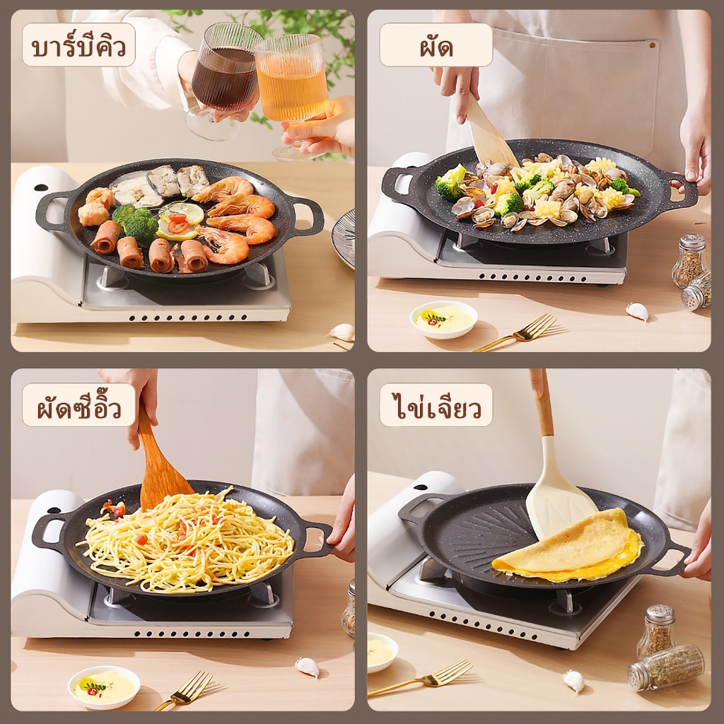 กระทะทรงแบน กระทะปิ้งย่างบาร์บีคิว/ย่างเนย เคลือบ non-stick ไม่ติดกระทะ มี6ขนาด 28/30/32/34/36/38cm