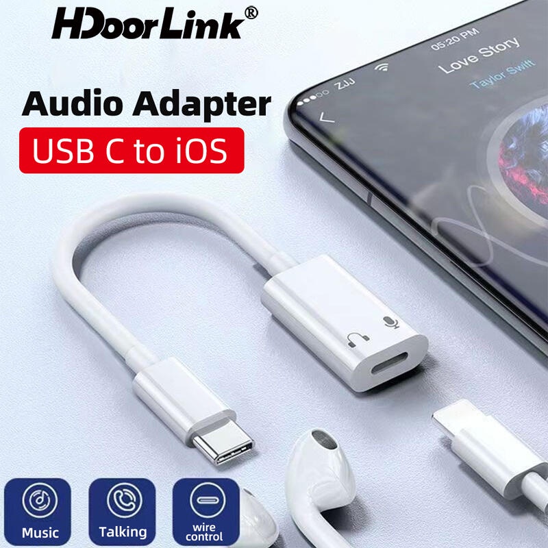 Hdoorlink USB C เป็น iOS สายอะแดปเตอร์เสียงหูฟัง Type C เป็น IOS สายชาร์จแปลงข้อมูล สําหรับ ip 15 Pad Pro Samsung Xiaomi