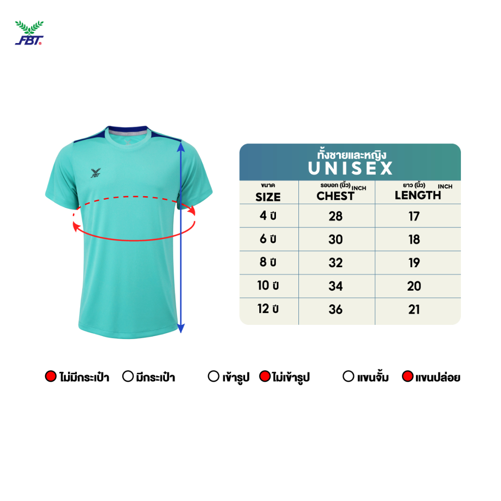 [เสื้อ/กางเกงเด็ก ไซส์ 4-12] FBT เสื้อฟุตบอล กางเกงเด็ก ตัดต่อผ้าไมโครโพลีเอสเตอร์ ใส่สบาย รหัส B2A219