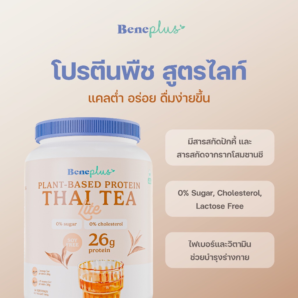 Beneplus Lite Protein รสชาไทย : โปรตีนพืช 26g สูตร Soy Free ช่วยเผาผลาญ ดื่มง่าย ไม่มีน้ำตาล แคลต่ำ กระปุก 560g