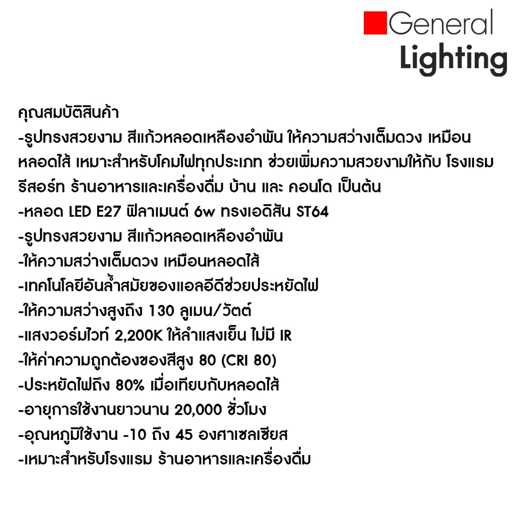 หลอดไฟเอดิสัน หลอดไฟวินเทจ LED E27 ST64 LED 6W แสงวอร์มไวท์ [3832] มีสต็อก จัดส่งสินค้าทุกวัน