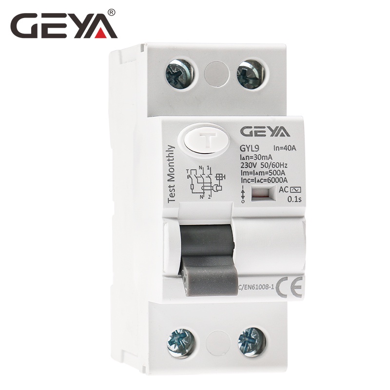 Geya GYL9 AC ประเภท RCCB แม่เหล็กไฟฟ้า Residual Current Circuit Breaker AC ELCB 2 เสา 25A 40A 63A 100A RCD 30mA 100mA 300mA