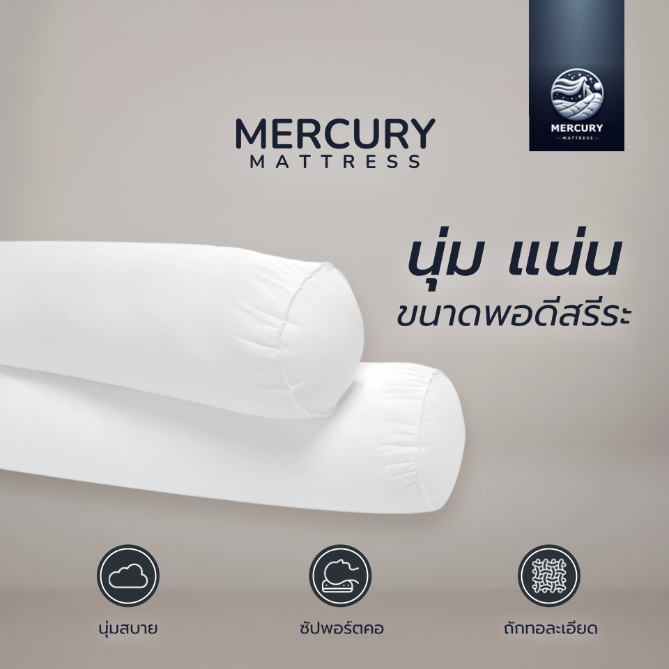 Mercury Mattress [ส่งฟรี] หมอนข้าง [1แถม1] ขนาด 12x42 นิ้ว ราคาคุ้มสุดๆ ของแท้ 100% ใยสังเคราะห์ เกรดA แก้ปวดคอ