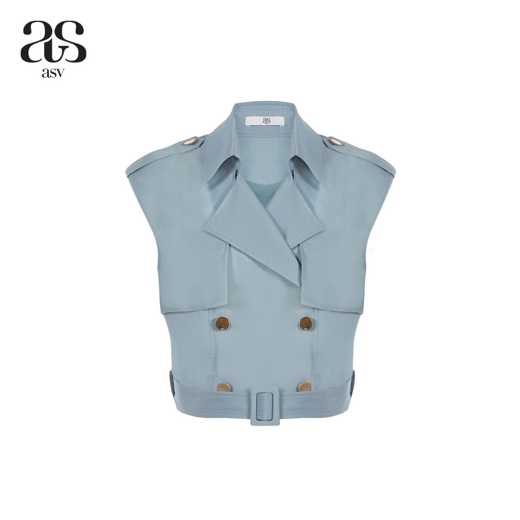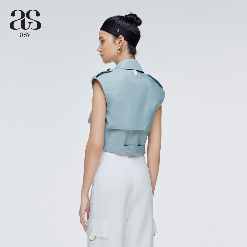 [asv ss24] Agnes Cropped Blouse เสื้อผู้หญิง ทรงครอปครึ่งตัว แขนล้ำ แต่งกระดุมคู่ด้านหน้า แต่งคาดเข็มขัด