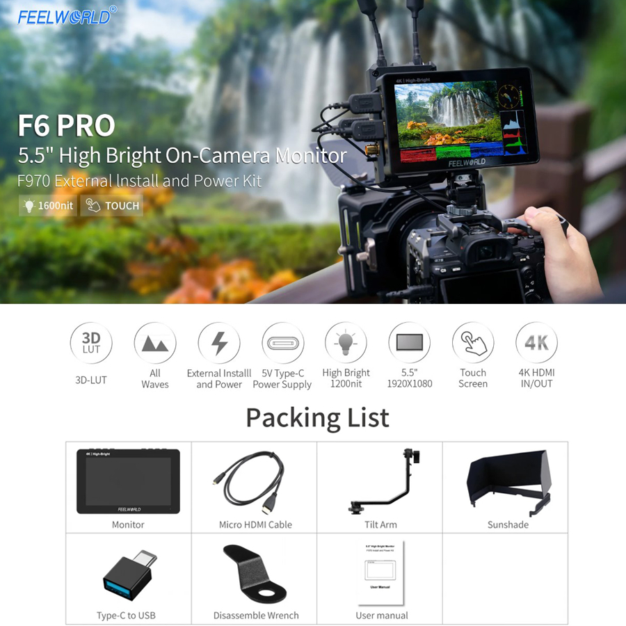 FEELWORLD F6 PRO 5.5 Inch รุ่นใหม่ภาพชัด หน้าจอทัชสกีน จอมอนิเตอร์ สำหรับกล้อง DSLR กล้องมิเลอร์เลส