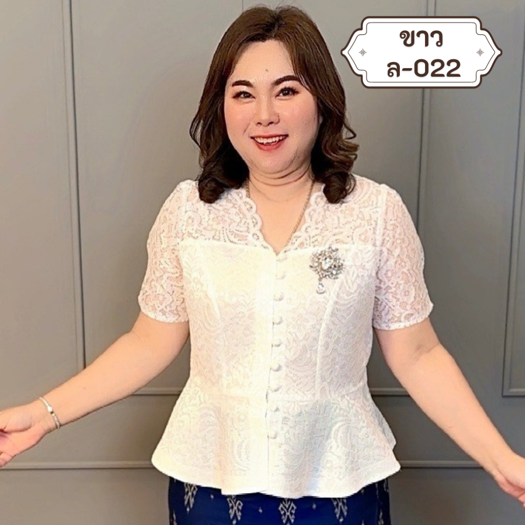ล22 เสื้อลูกไม้ทรงกระดุมหน้า คอหยักเอวระบาย