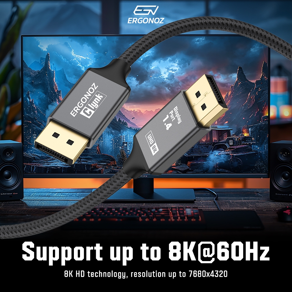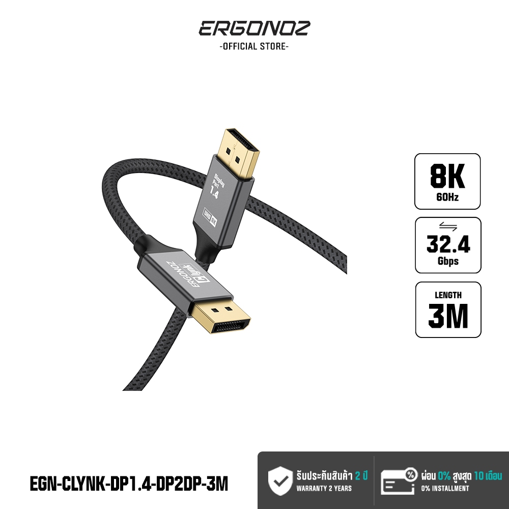 ERGONOZ Clynk (DP1.4) Display Port DP to DP Cable ความละเอียดภาพสูงสุด UHD 8K@60Hz สายถัก ยาว 2M 3M