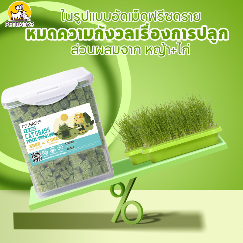 หญ้าแมวฟรีซดราย ขนมแมว 640กรัม ขนมหญ้าแมวบำรุงขน อกไก่ผสมต้นอ่อนข้าวสาลีฟรีซดราย โปรตีนสูง