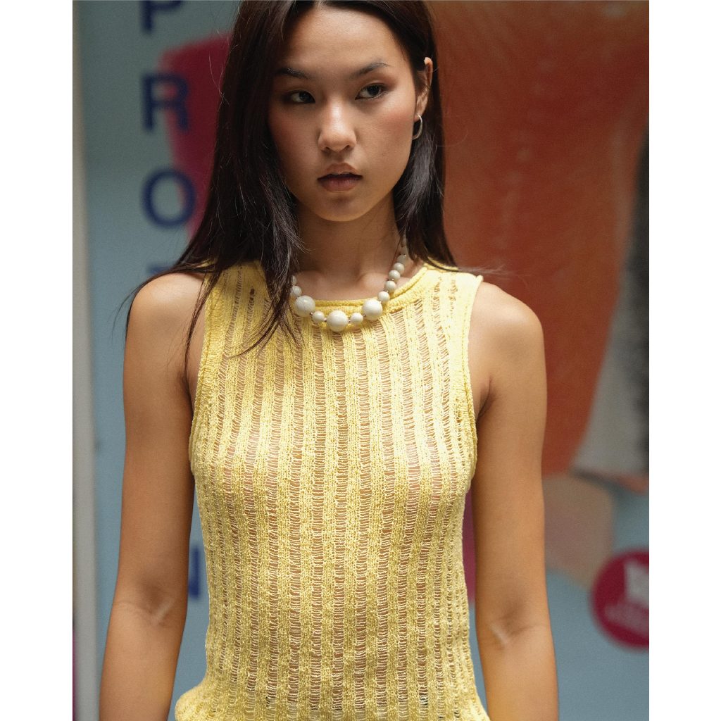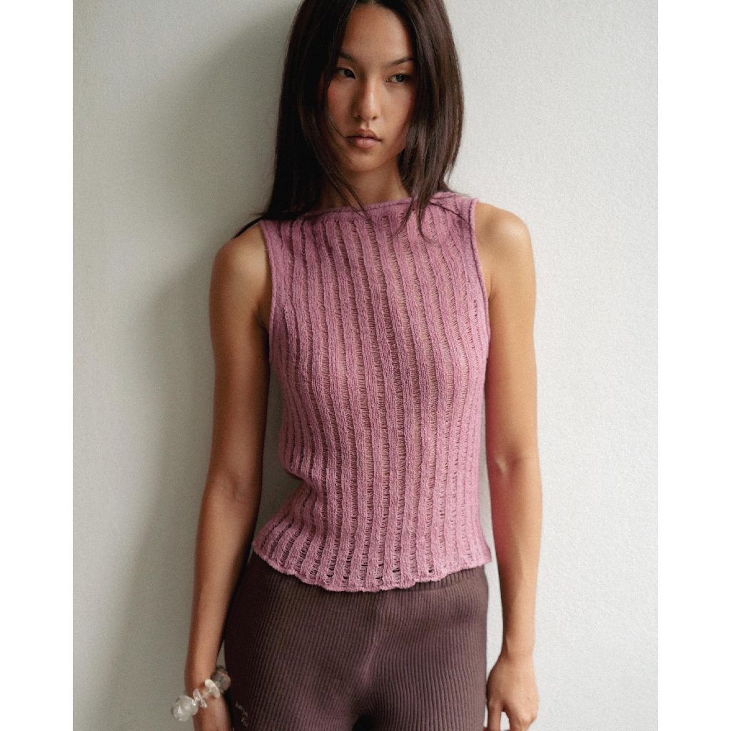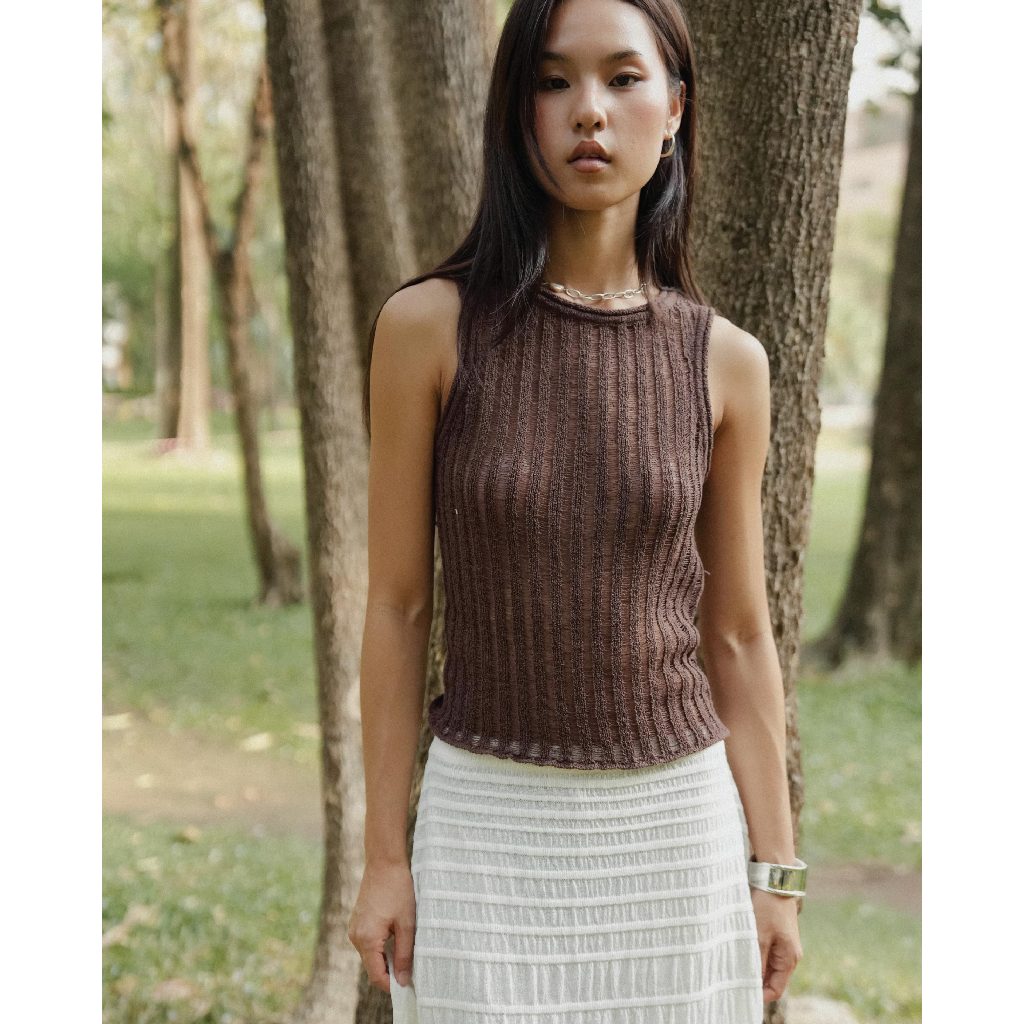 knitCircle - BAMBOO Tank top (3 สี) เสื้อกล้ามไหมพรม ลายทอปล่อยร่องแนวตั้ง ซีทรู เส้นด้ายมีเทกซ์เจอร์ ดีเทลชายม้วน