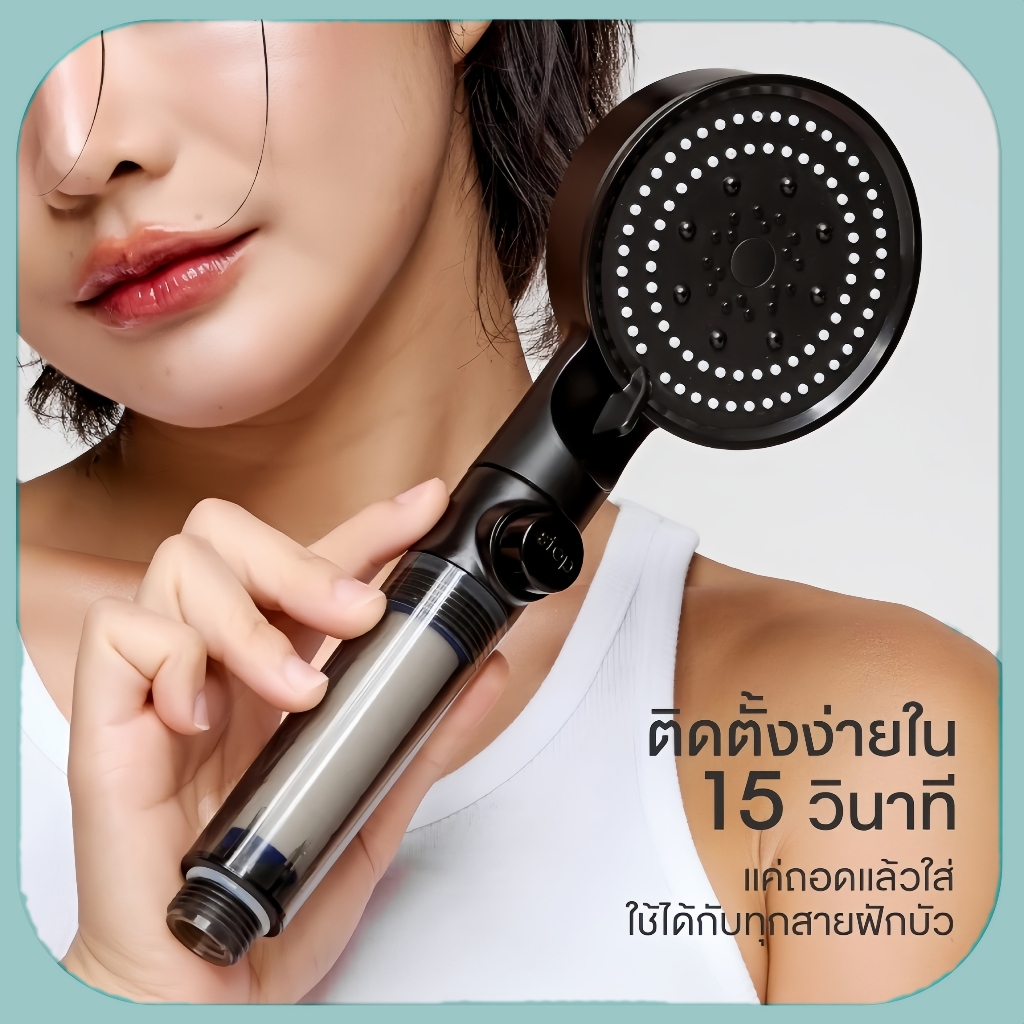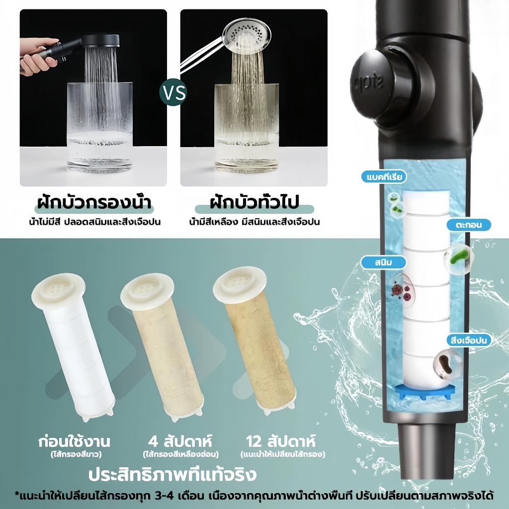 ฝักบัวกรองน้ำ 5 Spray กบัวกรองน้ำ Shower Filter ฝักบัวแรงดันสูง ปรับได้ 5 ระดับ Cotton Micro Filter