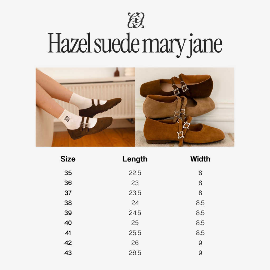 (พร้อมส่ง) CHUUCHOP - ( Size 35-43) Hazel Suede Mary Jane รองเท้าแมรี่เจนหนังกลับ นิ่ม ใส่สบาย (C8389)