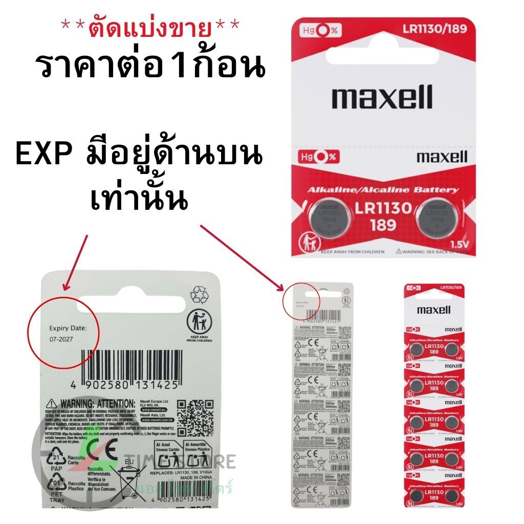 ถ่านกระดุม Maxell (มาเซล) LR1130 / 189 Alkaline 1.5V ของแท้ แบ่งขาย 1ก้อน