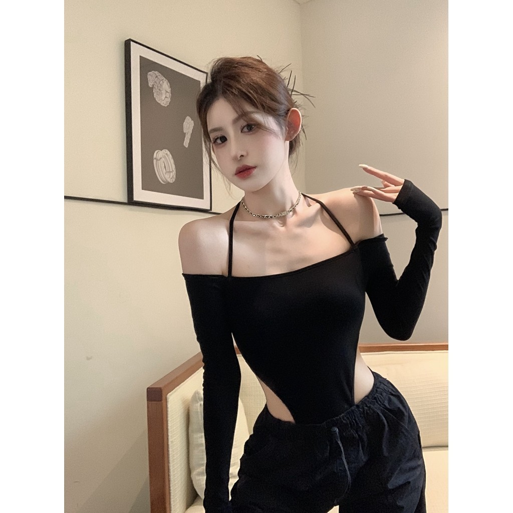 💐GGals💐เสื้อบอดี้สูท การจัดส่งที่รวดเร็ว แขนยาวเปิดไหล่เสื้อผู้หญิง การออกแบบที่ไม่สม่ำเสมอ เทรนด์เซ็กซี่