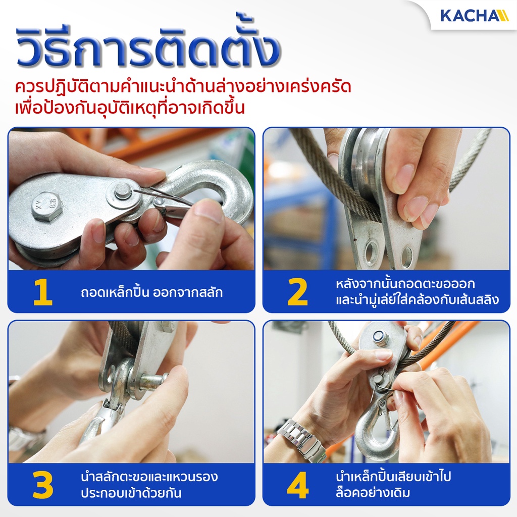 Kacha รอกเชือก หัวรอกยกของ ตะขอรอกสลิงไฟฟ้า วัสดุจากเหล็ก คุณภาพ แข็งแรงทนทาน รับประกันของแท้ 100%