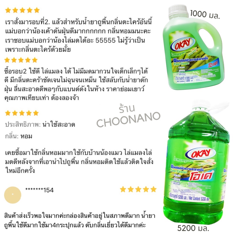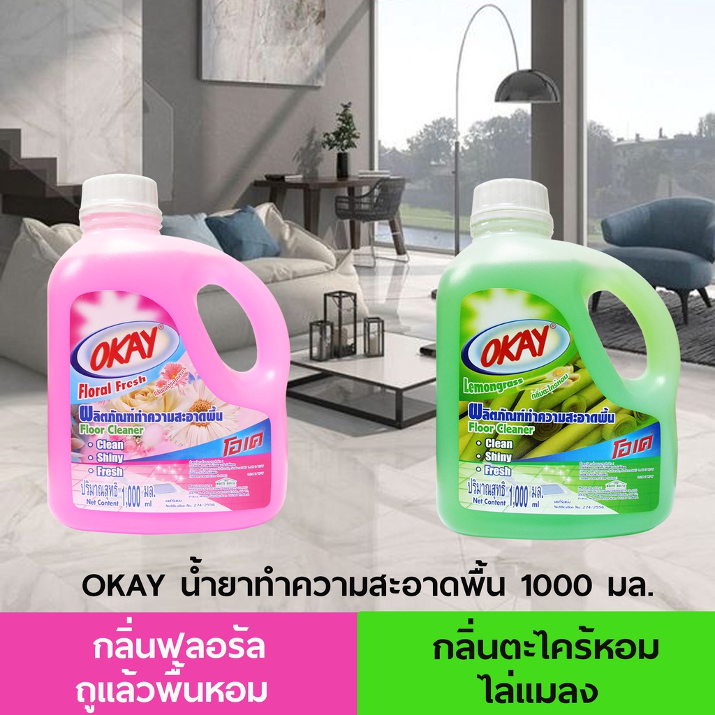 OKAY โอเค น้ำยาทำความสะอาดพื้น ไล่มด ไล่แมลง (FCG1000) กลิ่นตะไคร้ 1 ขวด