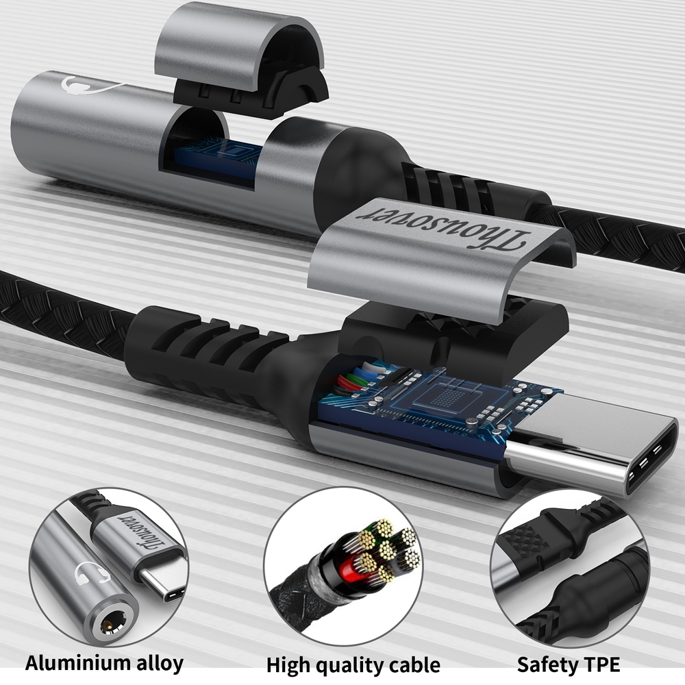 อะแดปเตอร์แจ็คหูฟัง USB C เป็น 3.5 มม. L54 HiFi DAC Realtek Chip 16 Bit 48 KHz Aux Audio Adapter Type-C 3.5 มม.