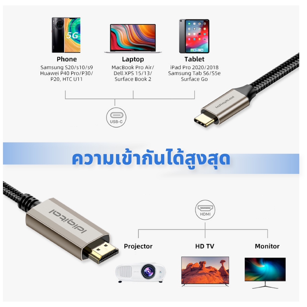 ⚡ส่งจาก กทม⚡Idigital สาย Type C USB C to HDMI, 4K 60Hz, 1080p 240Hz,1m-3m, สำหรับแล็ปท็อป, Macbook, สมาร์ทโฟน, แท็บเล็ต