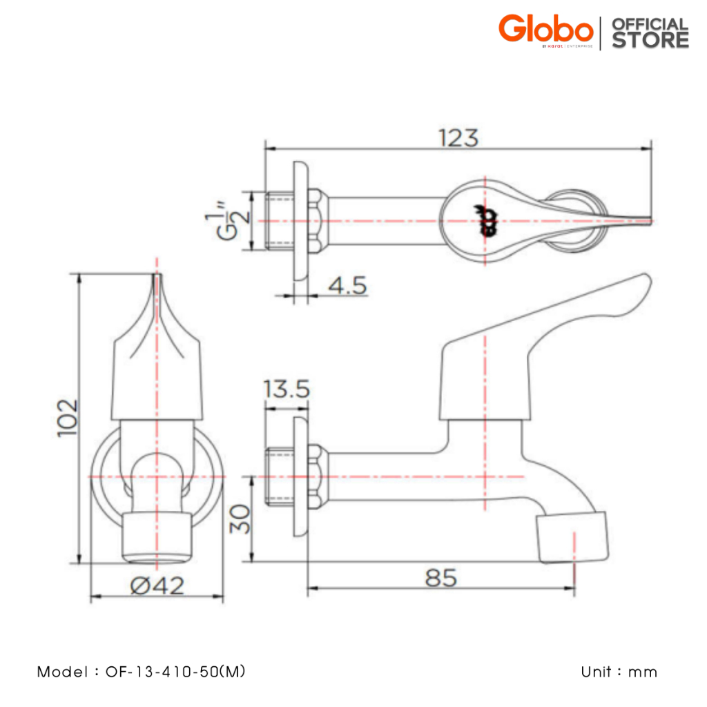 (สินค้า Clearance)Globo ก๊อกเดี่ยวติดผนัง ก๊อกล้างพื้น รุ่น OF-13-410-50(M)