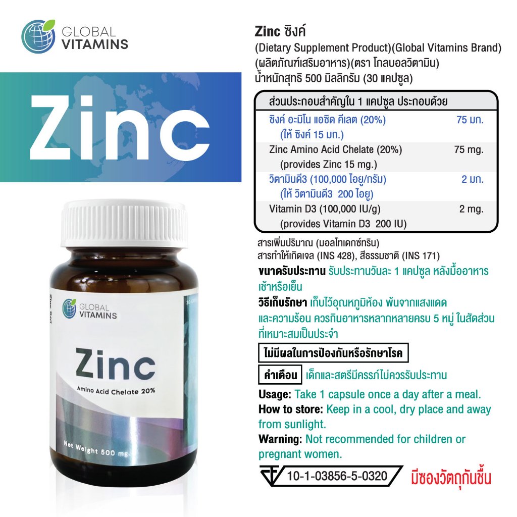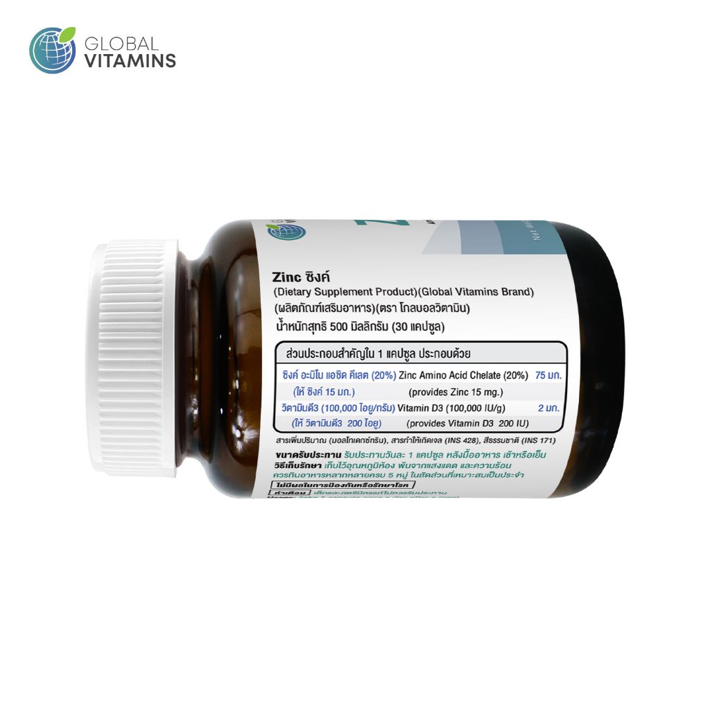[แพ็ค 3 ขวด] ซิงค์ โกลบอลวิตามิน Zinc Global Vitamins ซิงค์Zinc ซิงค์ วิตามินดี วิตามินดี3