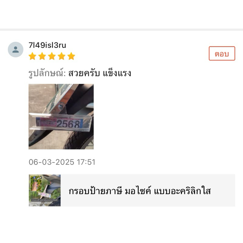กรอบป้ายภาษี มอไซค์ แบบอะคริลิกใส