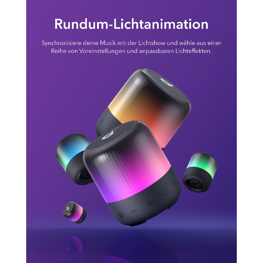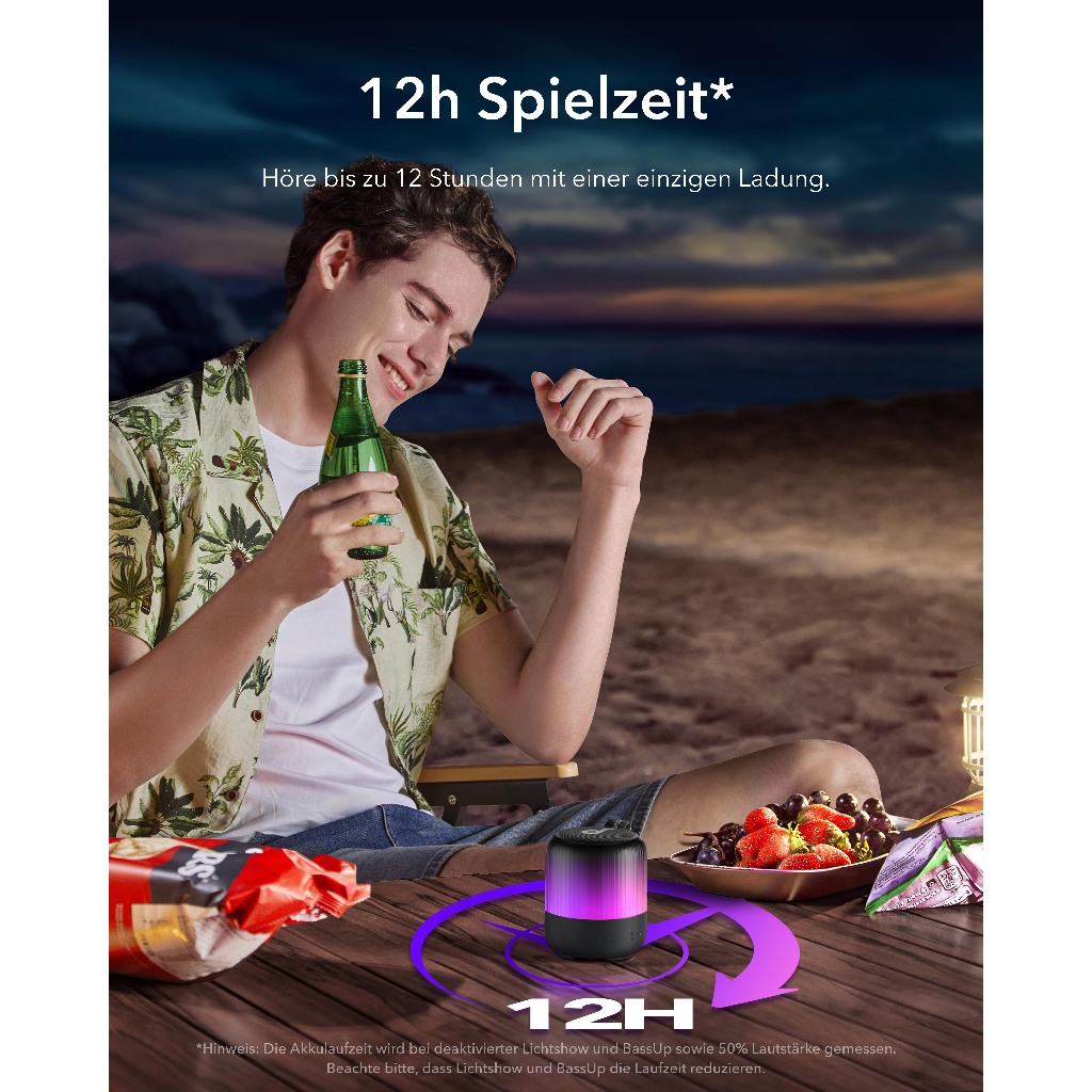 Soundcore Glow ลําโพงบลูทูธ ขนาดเล็ก แบบพกพา พร้อม 360° แบตเตอรี่ EQ 12H กันน้ํา กันฝุ่น IP67 สําหรับตั้งแคมป์ บ้าน