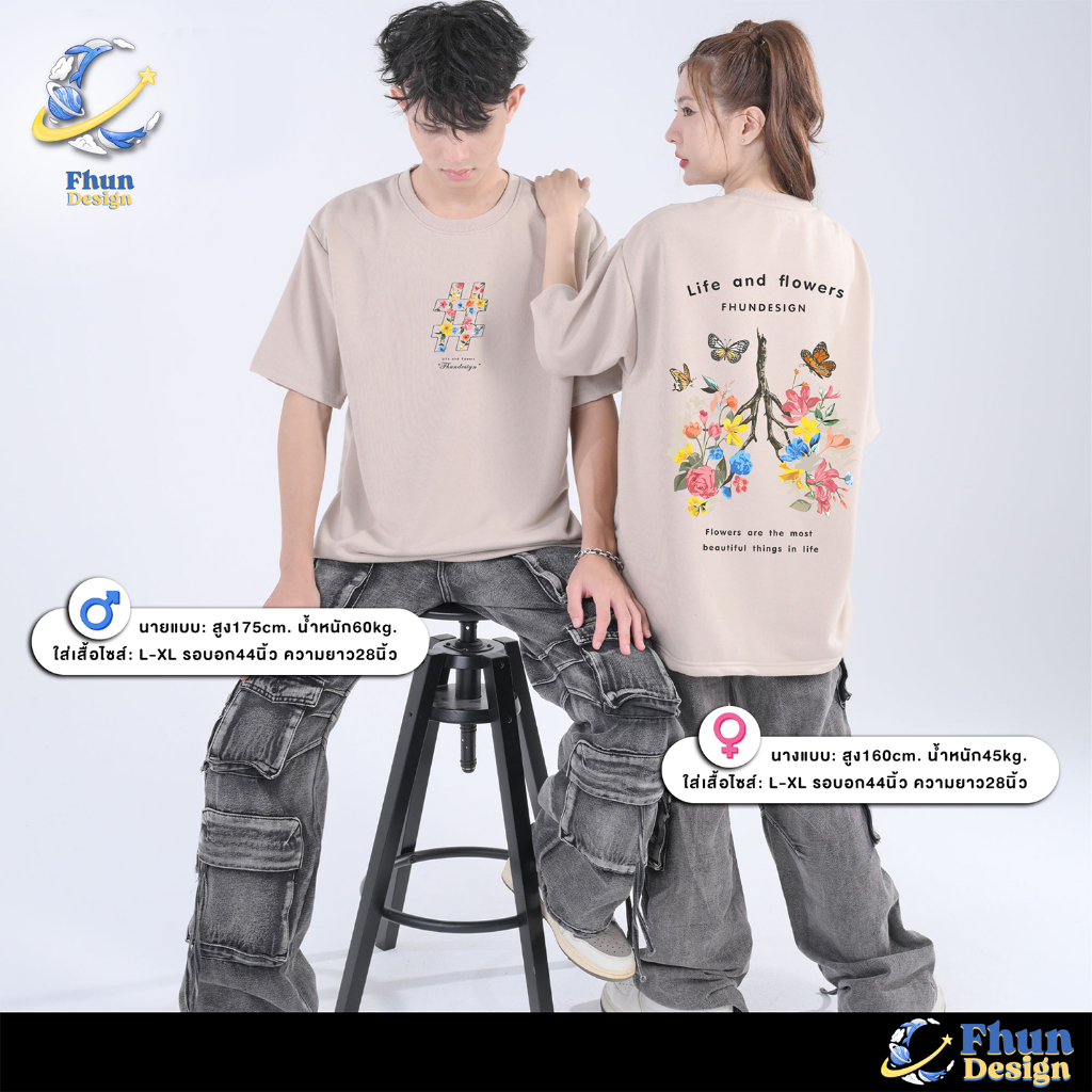 FhunDesign เสื้อยืดโอเวอร์ไซส์ คอลเลกชั่น Life and Flowers (ลิขสิทธิ์แท้100%)