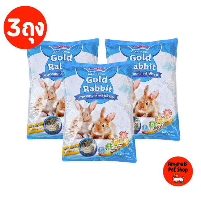 (เซต 3 ถุง) (1 kg.) Gold Rabbit โกลด์ แรบบิท อาหารกระต่ายสำเร็จรูป