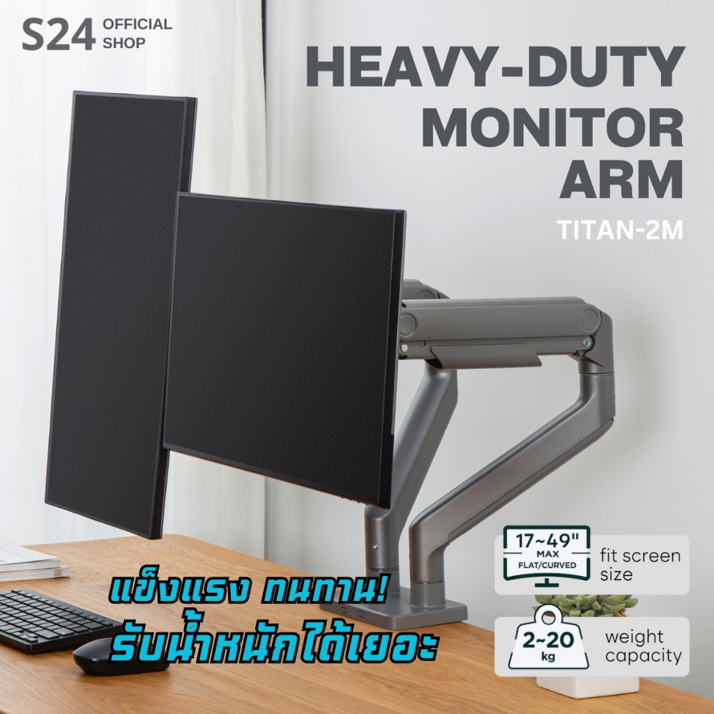 MOUNTAIN ขาตั้งจอคอม แขนจับจอ 2 จอ TITAN-2M รองรับจอ 17"-49" ใช้กับจอโค้งได้ HEAVY-DUTY MONITOR ARM