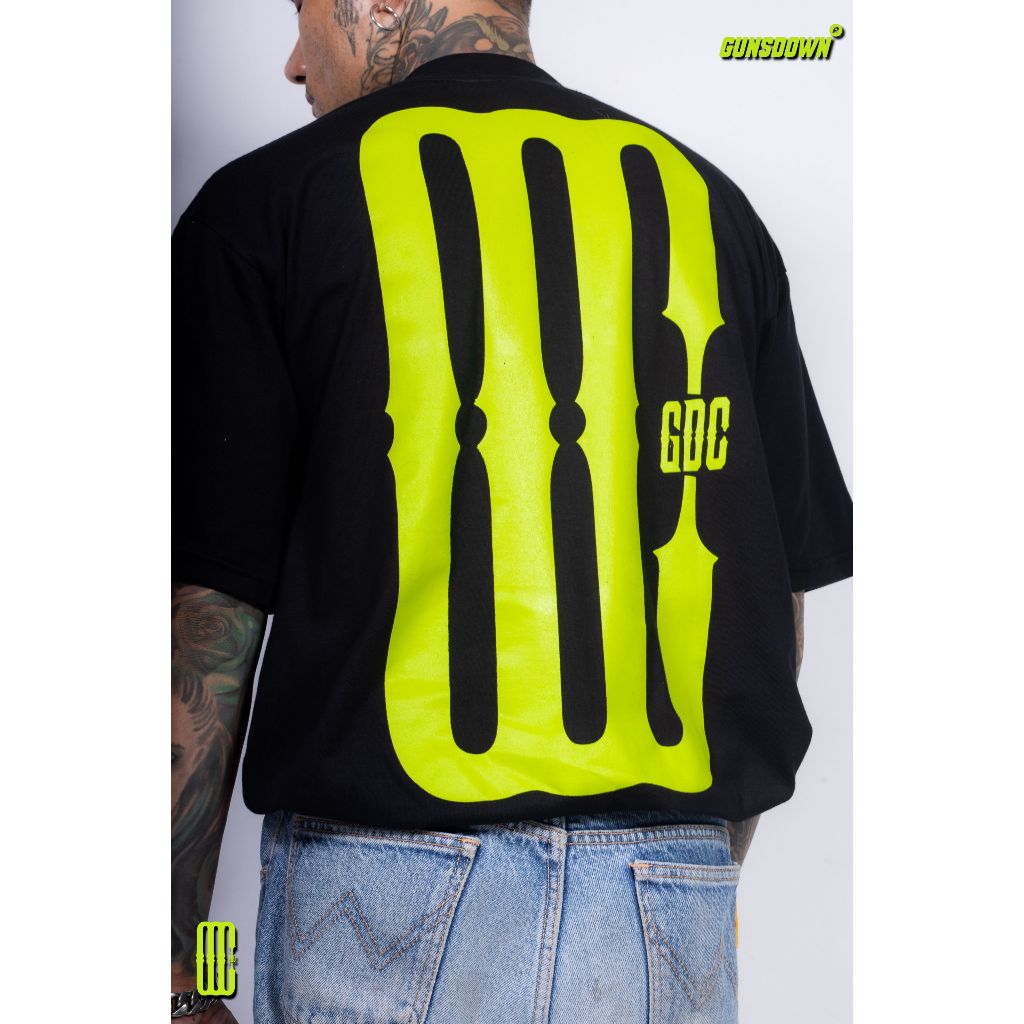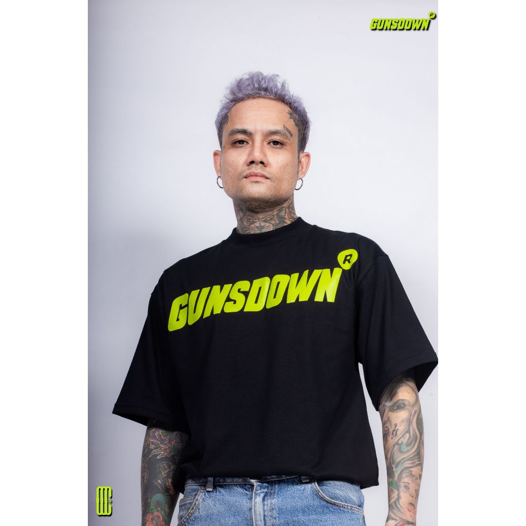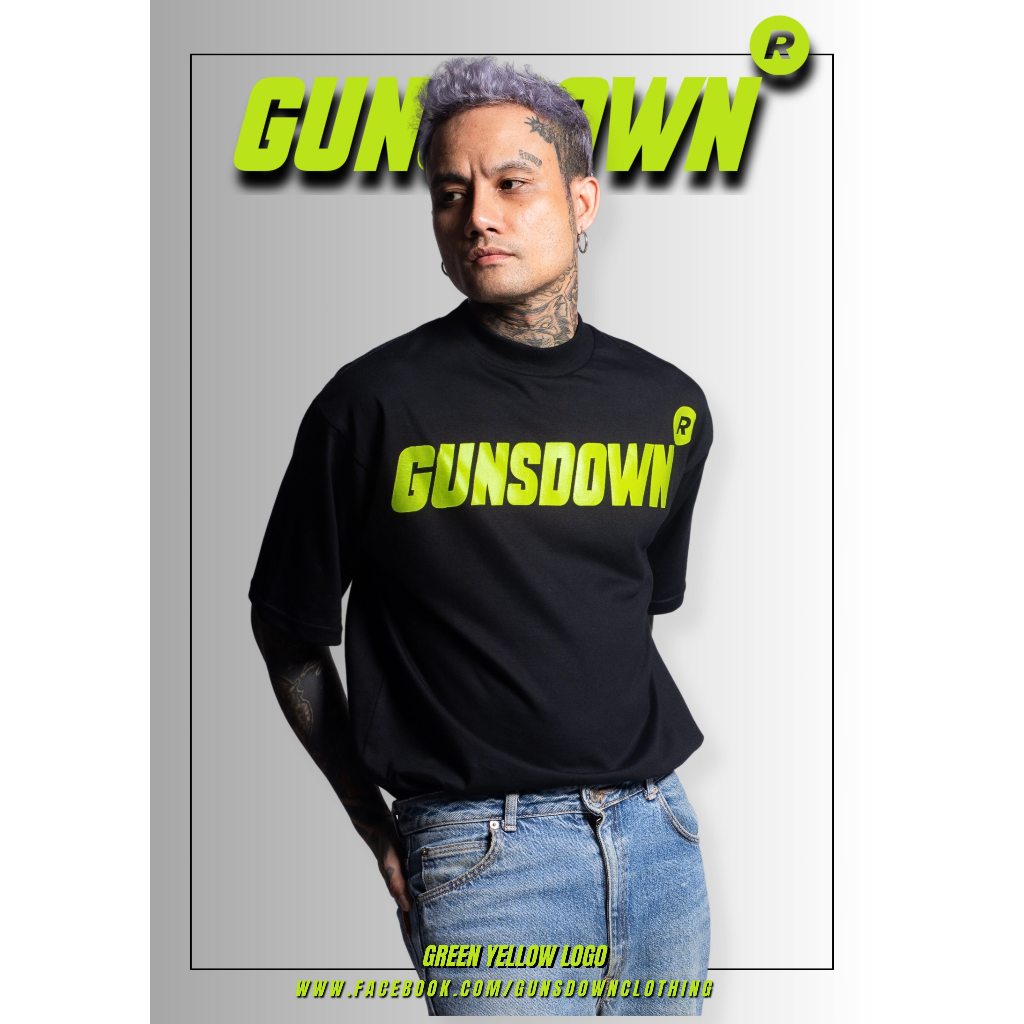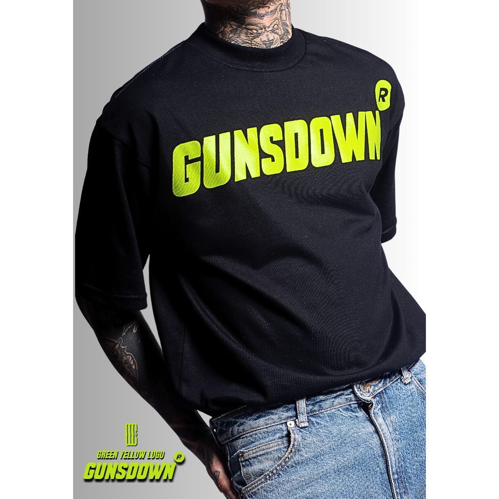 เสื้อยืดคอฟิตสีดำ GUNSDOWN® | GREEN YELLOW LOGO | Available Now.🔥