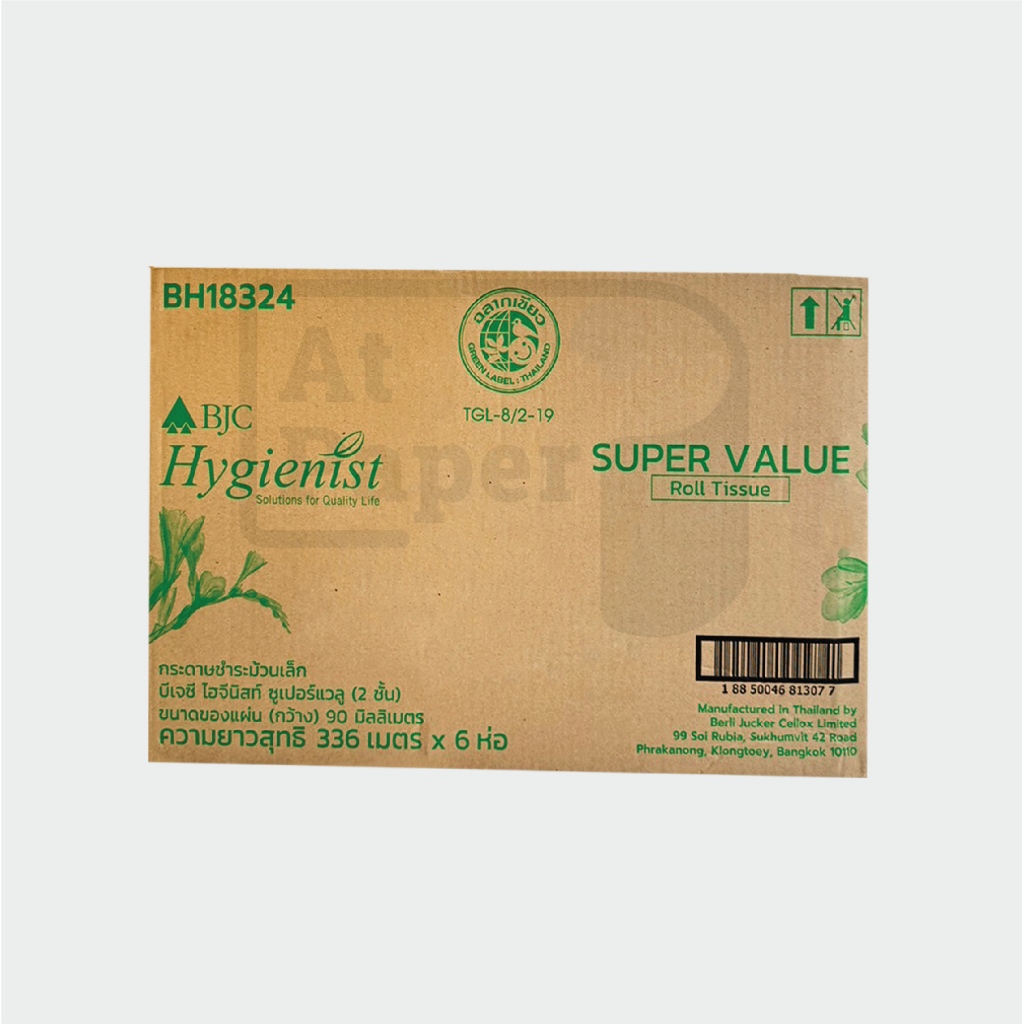 AtPaper BJC Hygienist กระดาษชำระม้วนเล็ก กระดาษทิชชู่ม้วนเล็ก ซูเปอร์แวลู 14 เมตร จำนวน 144 ม้วน, 1ลัง