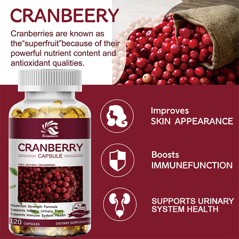 แคปซูลแครนเบอร์รี่ช่วยดูแลระบบทางเดินปัสสาวะ UTIเสริมภูมิคุ้มกัน บํารุงหัวใจ ด้วยสารต้านอนุมูลอิสระ